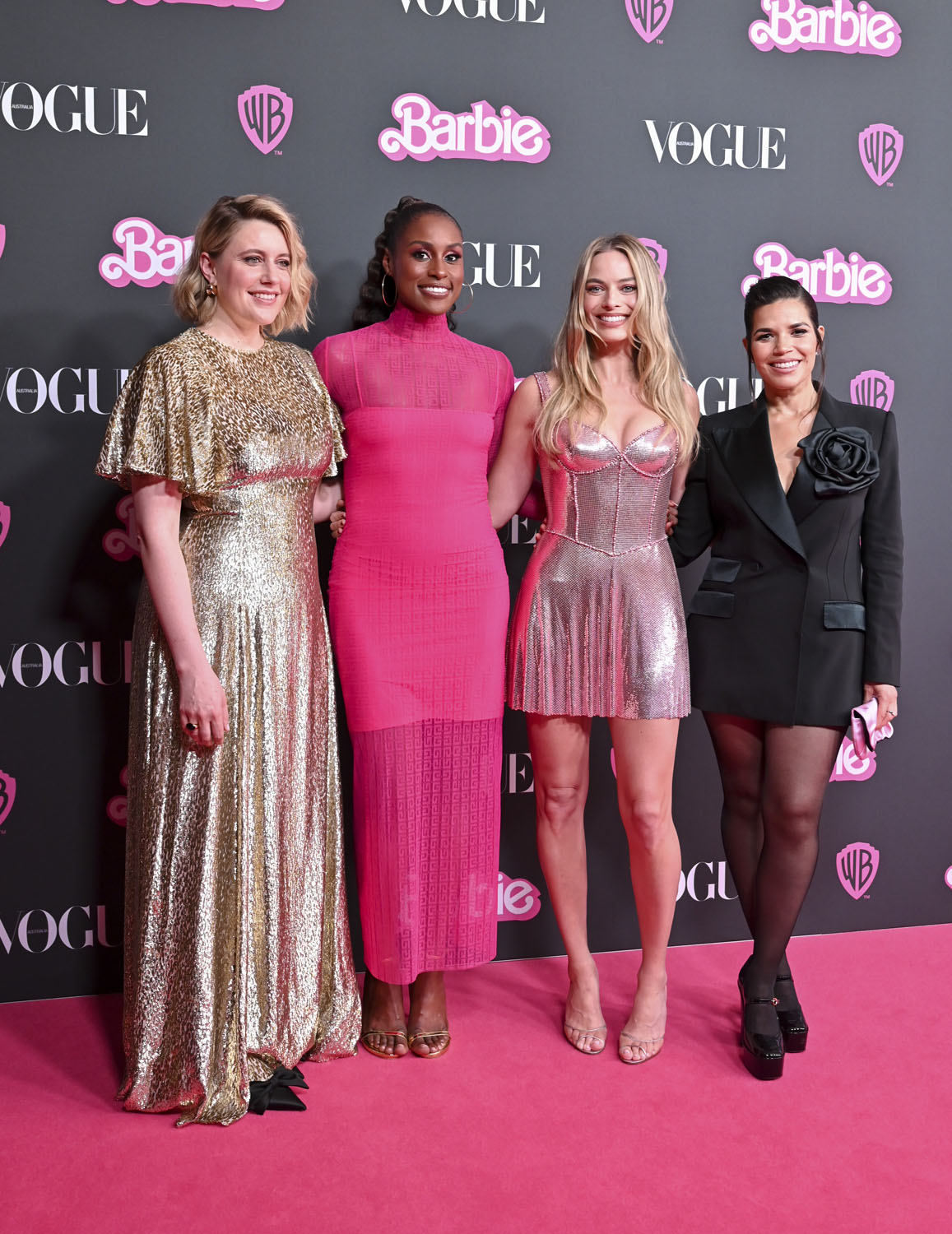 Clearly, everyone’s stylists are talking about what their clients are wearing to these events, unlike at The Afterparty premiere, where everyone got a different dress code. It doesn’t look fussy and overdone, but there is some thought going into the Barbie team styling. They are crushing it. Or should I say, beaching it? Is describing things as “beach” a thing yet? It should be, at least for Barbie girl summer.