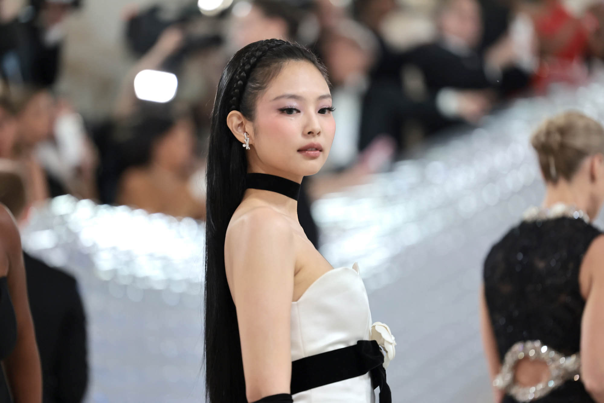 Jennie, on the hand, in a vintage look from the 90s, is Chanel-perfect. The brand-ambassador energy here is exactly right. The dress is a wonderful match for her, they made the perfect choice for her, and the accessories, the hair, and the makeup are all flawless. I particularly love the double braid headband (done with hair extensions), which I will be ripping off in the near future.