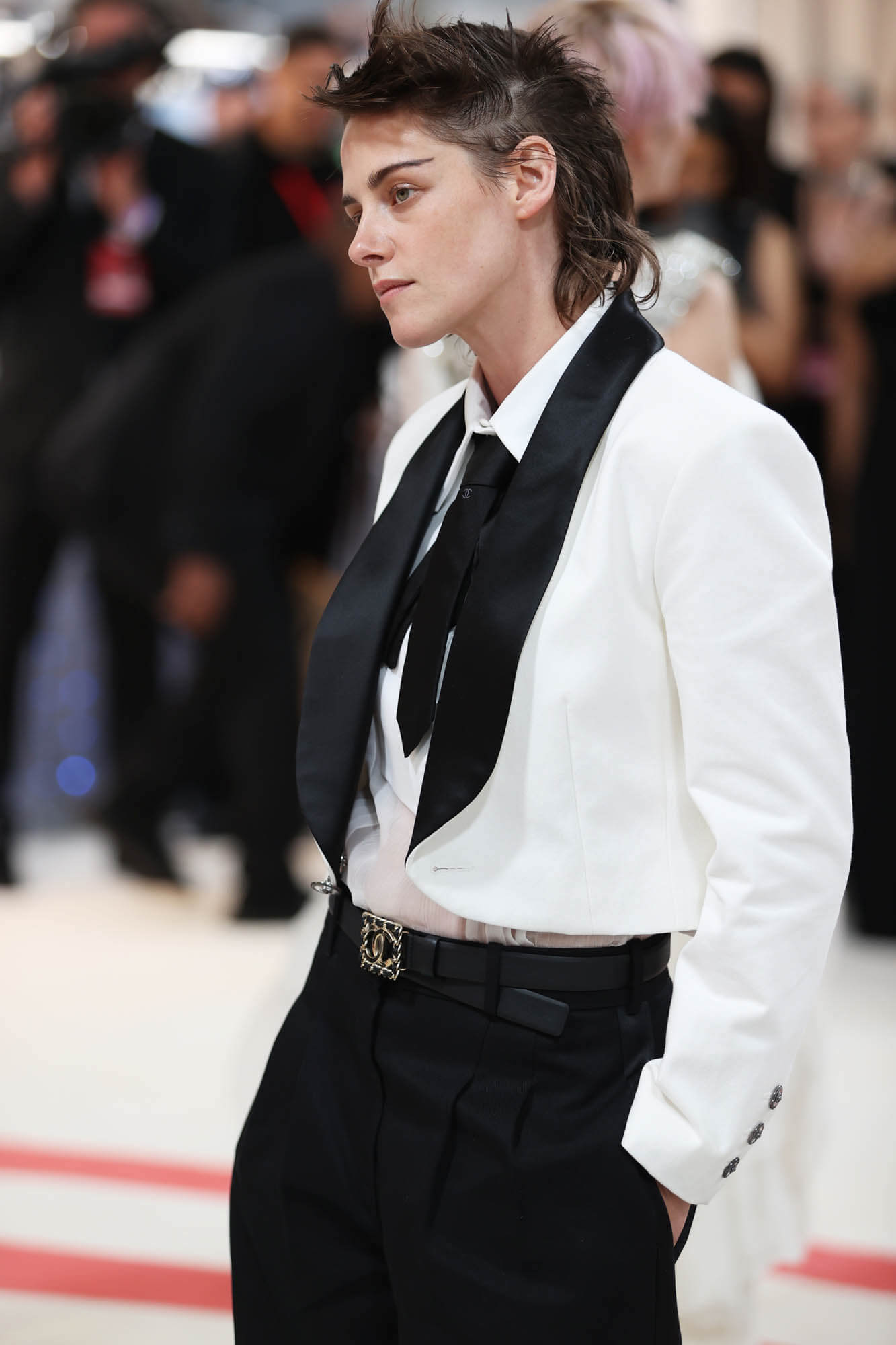 Kristen Stewart and Chanel have also, always, been outstanding combination. It’s been a decade now that Kristen’s been repping Chanel, and this time for the Met Gala they pulled from the Chanel 2017 resort collection – a black and white suit that vibes with her style energy and her stylist, Tara Swennen, told THR about how all it came together. This was a look that Kristen had her eye on back then but didn’t have occasion to wear it. You’ll note, when it was sent down the runway, it was worn by a male model. So it’s gender neutral, totally modern, but still classic, and totally her own.