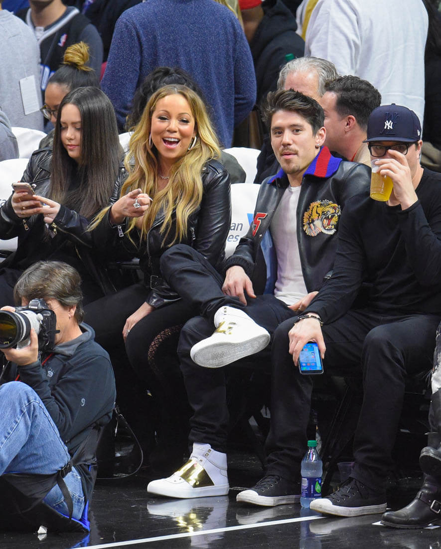 Here’s Mimi, with her tits, last night at the Clippers game. Bryan Tanaka was invited to come along to babysit all of them. Do you think Mimi knows what a crew neck is? Do you think she’s ever owned a crew neck? Do you think she thinks that crew necks are abusive?
