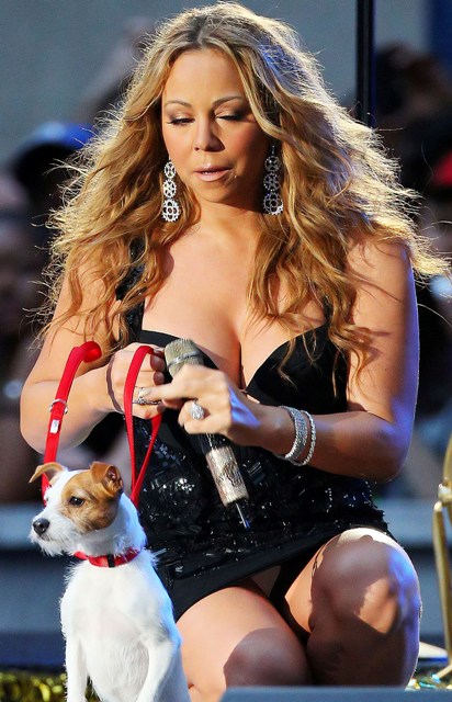 Later on she managed to drag her ass back out for a medley of some of her greatest hits in a black dress and with one of her dogs, obviously. I mean, why wouldn’t a jack russell terrier be on stage with Mimi during a medley of her greatest hits? Are you stunned that she was able to bend down? And stand back up? Also, Mimi wears white underwear.