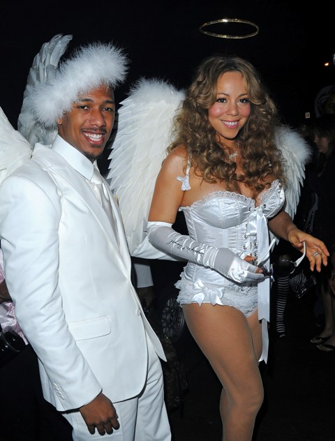You will note that Mimi, especially at Halloween, can’t resist sticking her ass out. Nick can’t block his wife from sticking her ass out. And his wife apparently is incapable of walking anywhere without someone holding her hand. Is Mariah Carey capable of independent transportation?