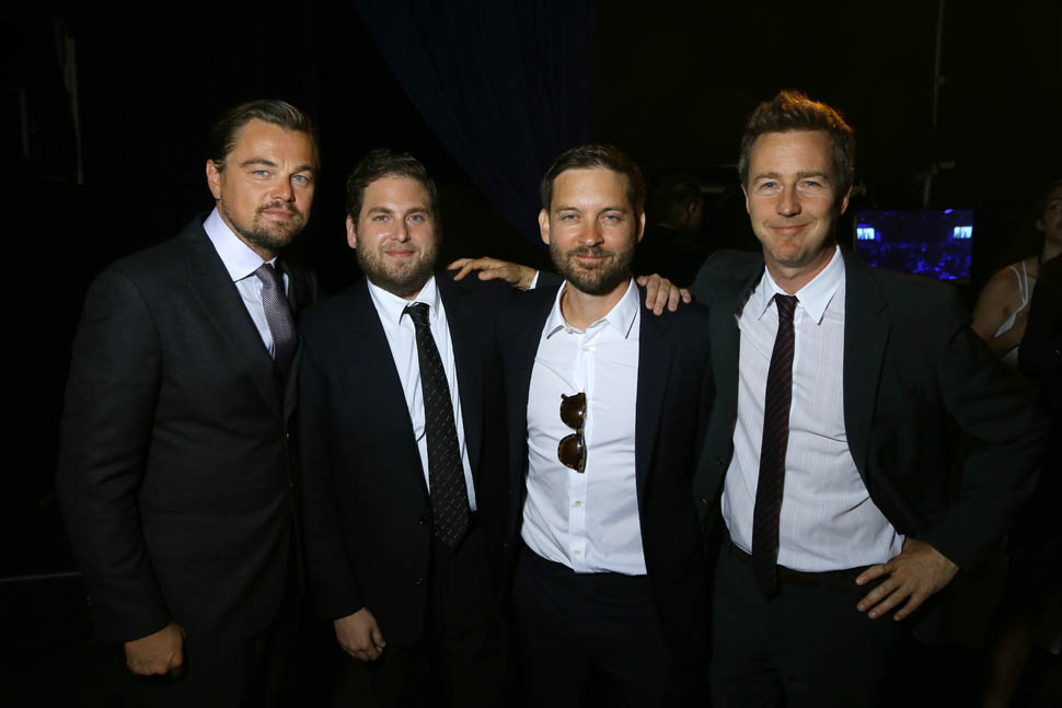 Anyway, Leo had a few of his boys there with him last night. Bradley Cooper, who’s been on holiday in Europe with Irina Shayk, was there. Jonah Hill, 2x Oscar nominee and friend of Marty, Leo, and Brange, too. Also Edward Norton. And Bono. And Chris Rock. The Weeknd performed.