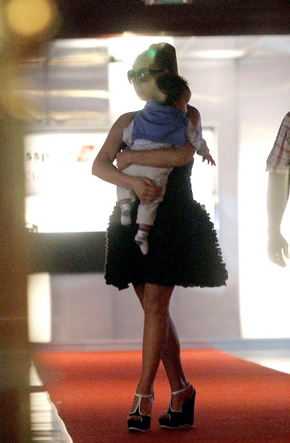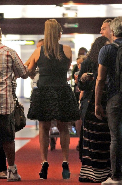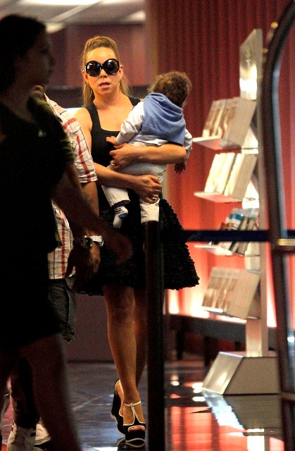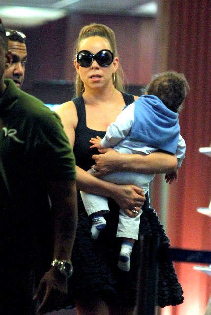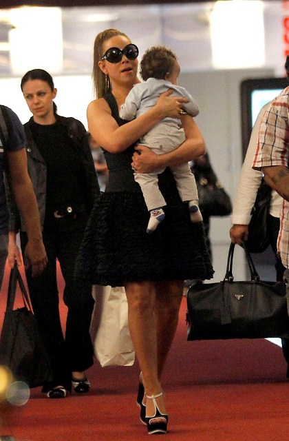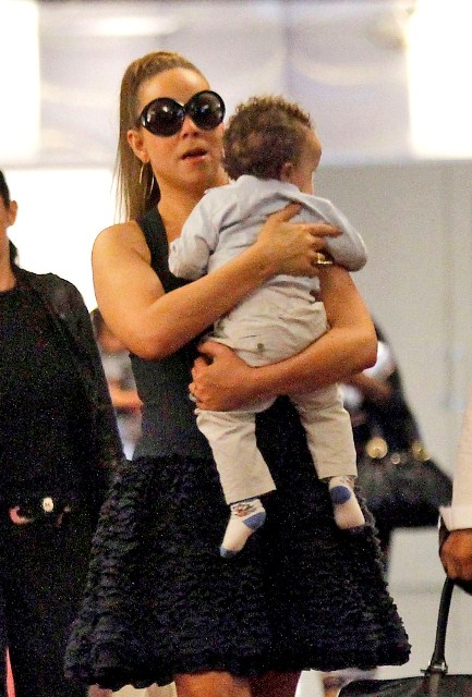 My Mimi played a show in Monaco the other day for which she was likely paid a LOT of money. Here she is at the airport in Nice presumably taking off with her babies. And of course she’s in heels. And she’s carrying one child. And she’s not sitting in a wheelchair! Or a chariot! Or a throne on top of an elephant!