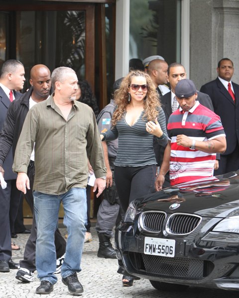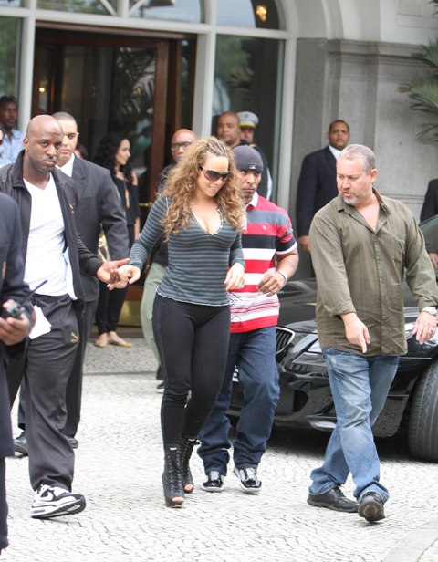 It’s Mariah Carey, of course, tottering around in Rio yesterday. Her heels were too high and the surface too uneven for her to stick her ass and tits out in her signature pose but I do love the way that security man is holding her hand for balance. Every Mimi photo is a gift, non?