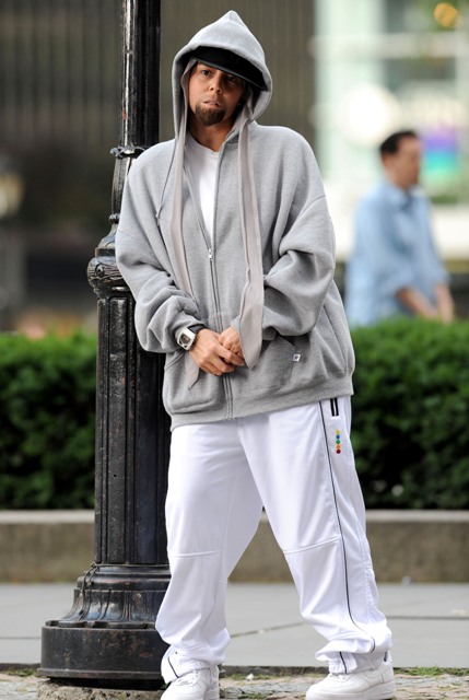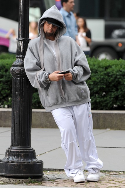 He keeps rapping about f-cking her, seemingly not able to get over her, and now she’s singing about his obsession with her. It’s Mimi yesterday in New York shooting her Obsessed video dressed up like a certain Slim Shady. Eminem says they had sex. Mimi said, in her words, that they didn’t get past first base. This is precisely what I love about her. She still talks about sex in baseball terms and Hello Kitties. Amazing.
