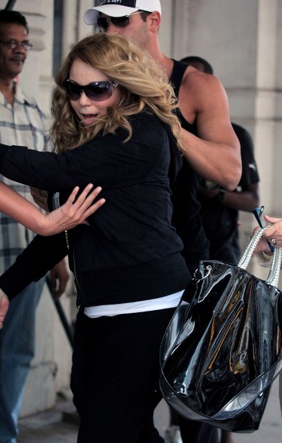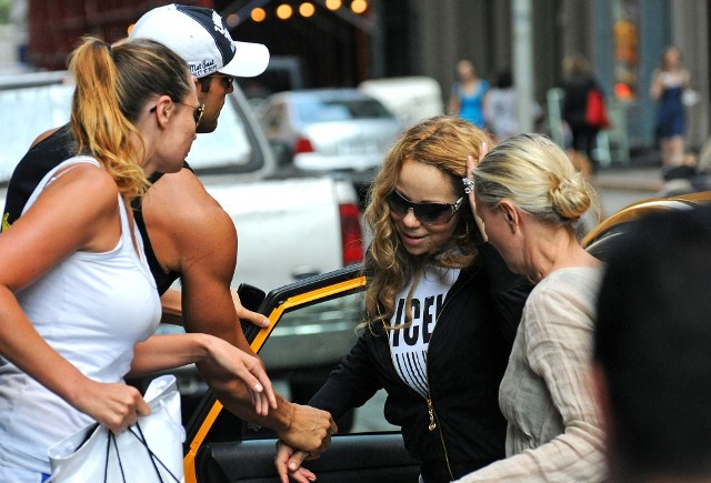 There were a few of them surrounding her yesterday in New York as she was apparently headed to a workout. With full hair and makeup? Please. I don’t know why I bother asking. Having said that, I often hit the gym with my trainer Hayley after coming directly from the studio, in full hair and makeup and, um, sometimes it makes you feel better about yourself.