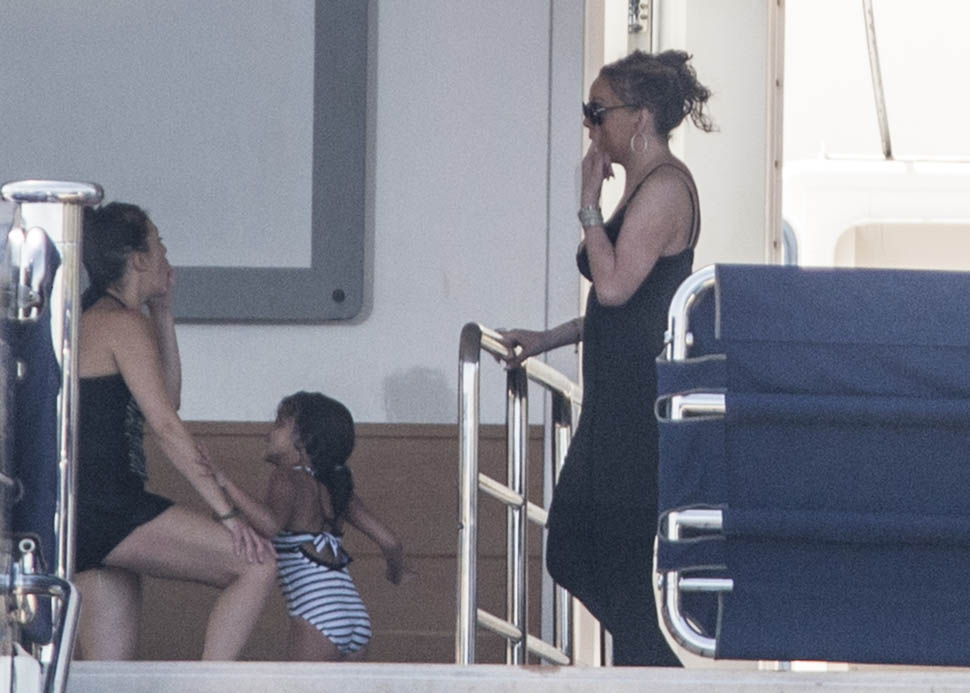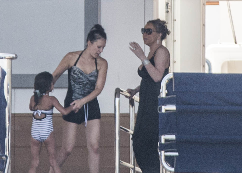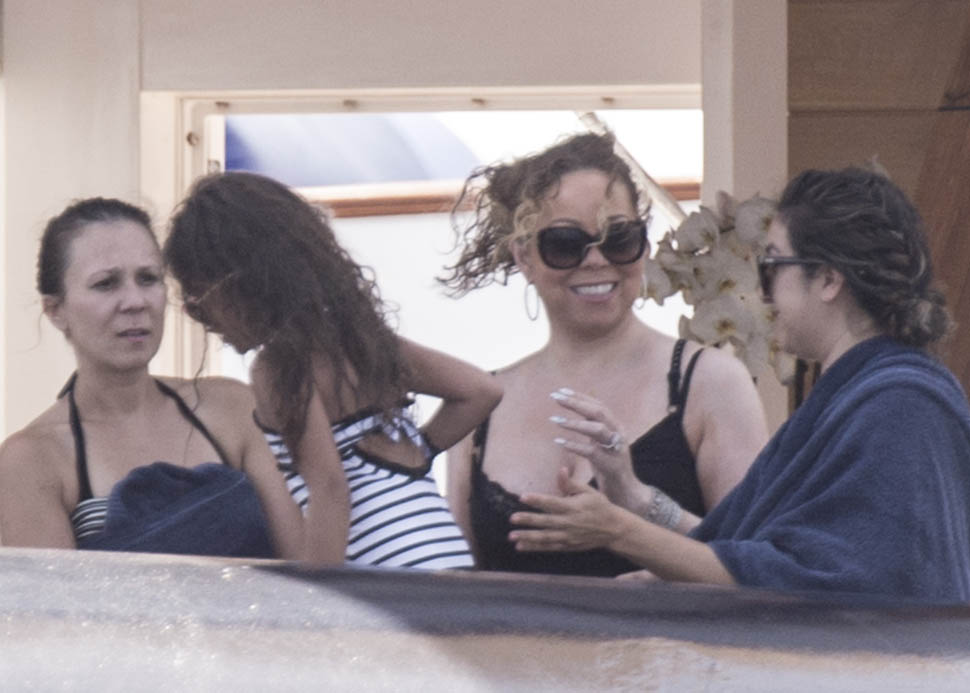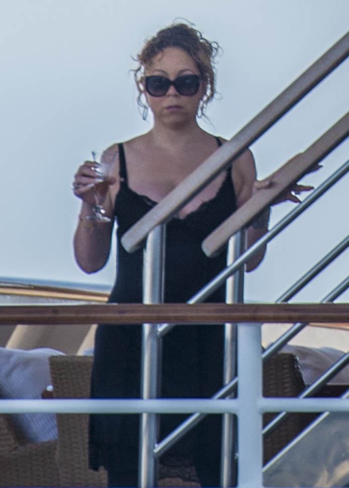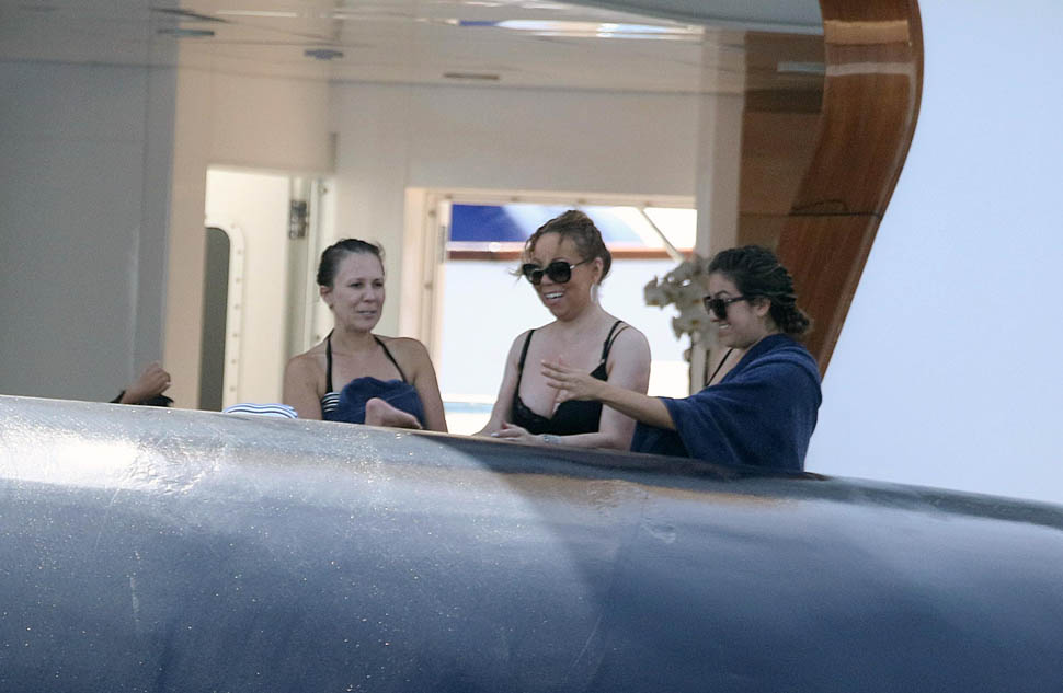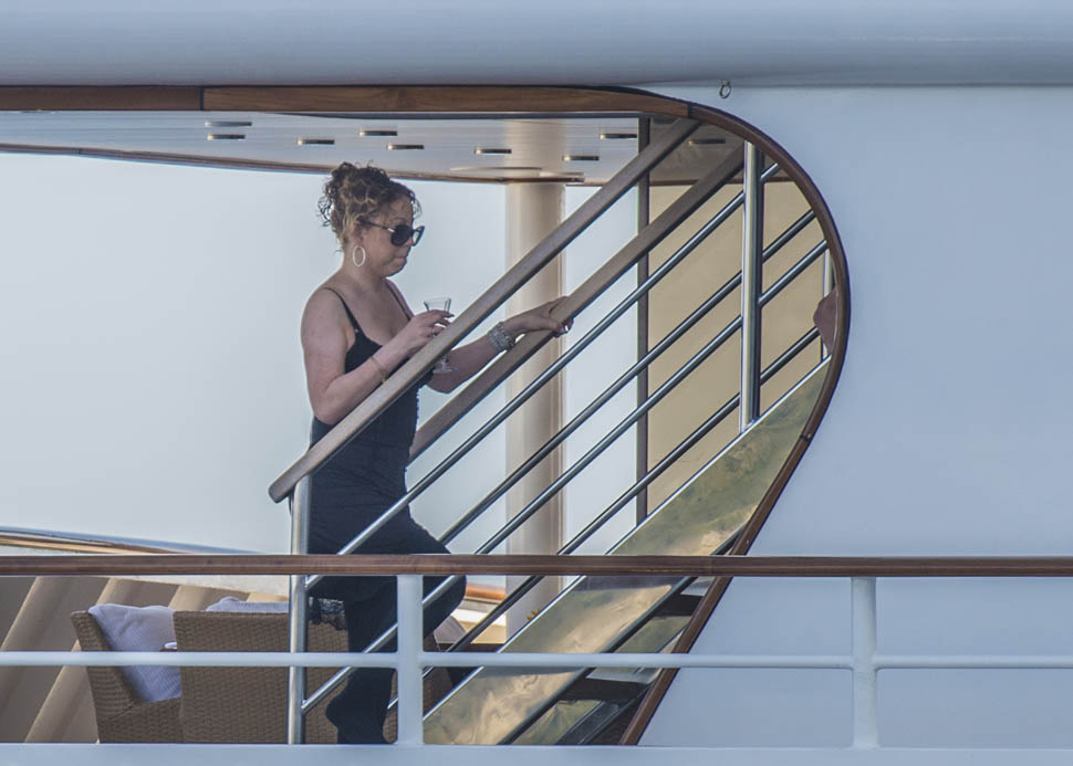 What could possibly be more festive than Mimi on holiday on a yacht, prancing around in tight clothes, making everyone listen to her music, and posing, of course posing. Always posing. And preening. And generally making no sense at all while a crowd of people surround her, clapping.