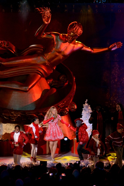 Mimi sang the lights on at Rockefeller Centre yesterday. The performance was taped to be broadcast tonight. It was All I Want For Christmas, obviously. Is that her most lucrative song? It has to be. How many butterflies have been rescued by that song?