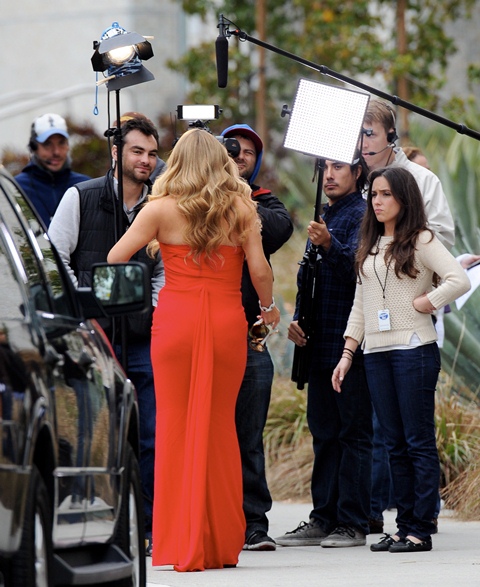 This year though, Mimi has a proper network television job. And, f-ck them, they are working her to the very last minute before the holidays. Here’s Mimi shooting American Idol’s Hollywood week. In a full length gown. I mean, if this is what she’s wearing for Hollywood week, what will we see from her during the live shows? Also, who’s idea was it to shoot Mimi walking from her car into the venue? Look at the expression on that girl’s face in the cream coloured sweater over jeans. She’s probably the one who had to listen to Mimi complaining about it all day.