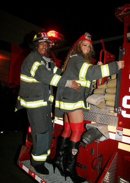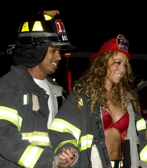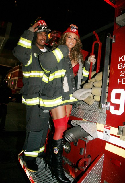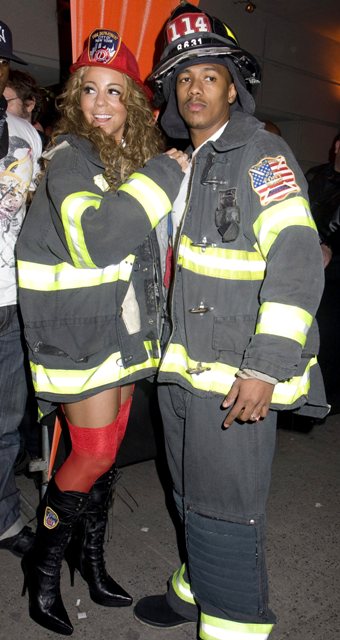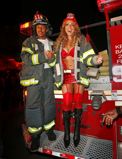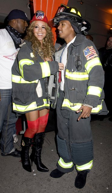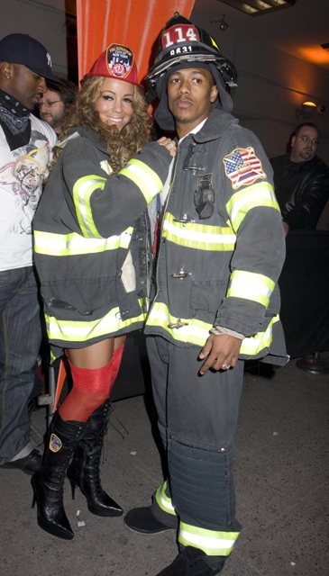 Check out Miss Cheese last night undressed as a fireman with her husband Nick Cannon in New York for a party.