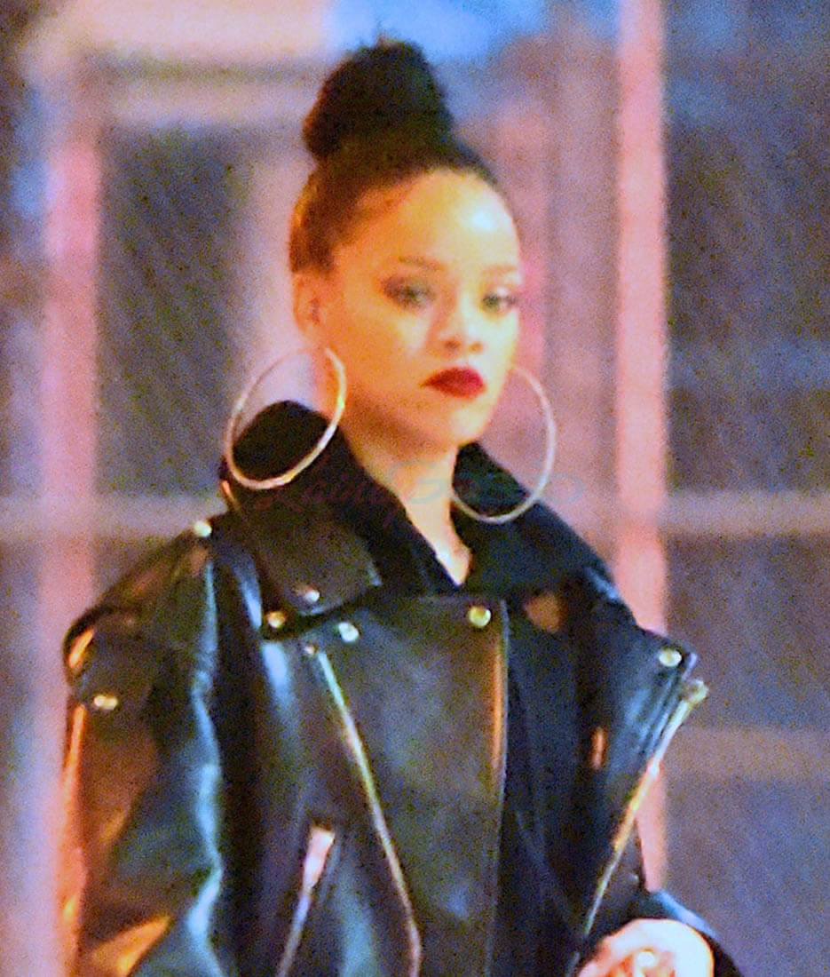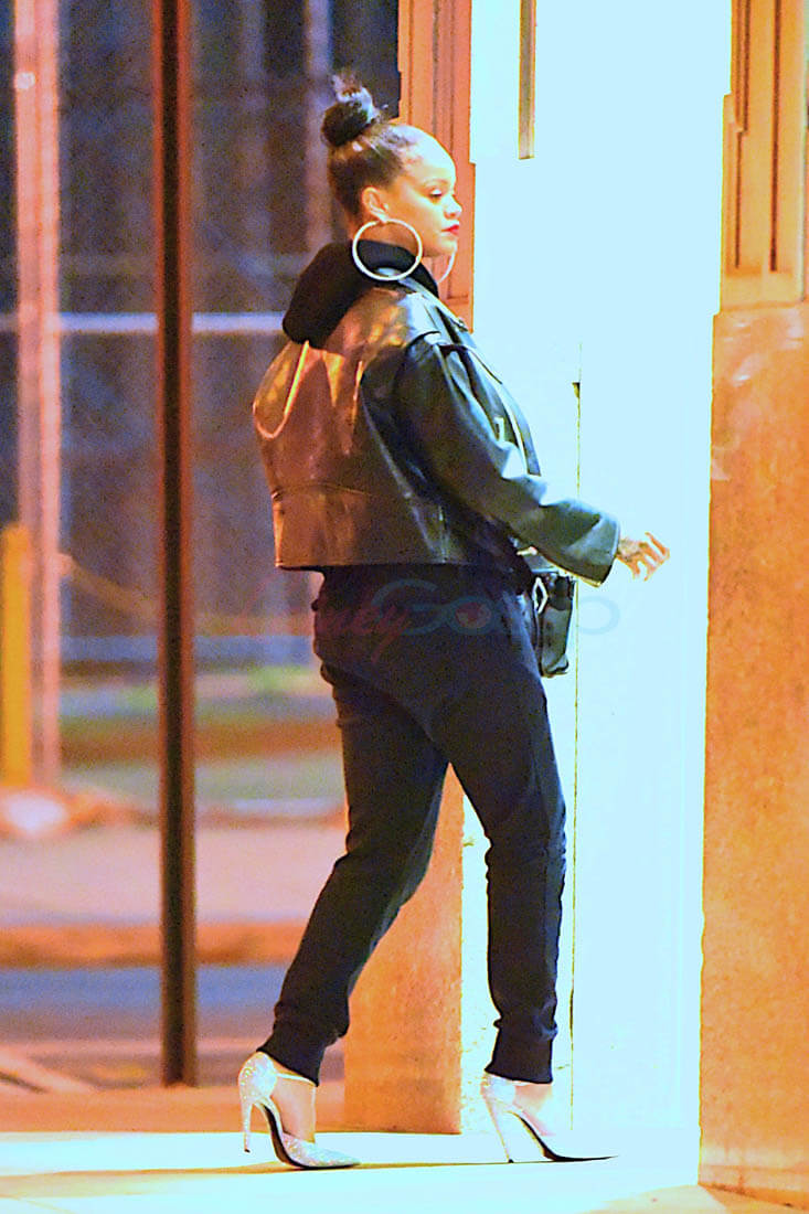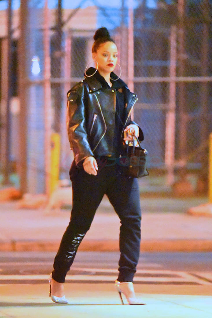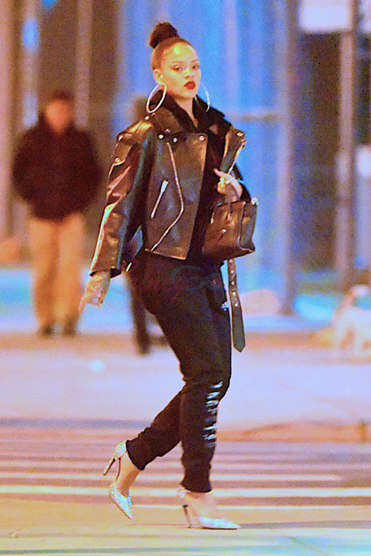 Here’s Rihanna out in New York last night giving me everything with her steeze. I don’t love the sparkly pumps but that doesn’t matter when you consider that they’re being worn under SWEATPANTS and a killer leather jacket and… MY GOD those earrings. I want those earrings. I want the strength to be able to wear those earrings.