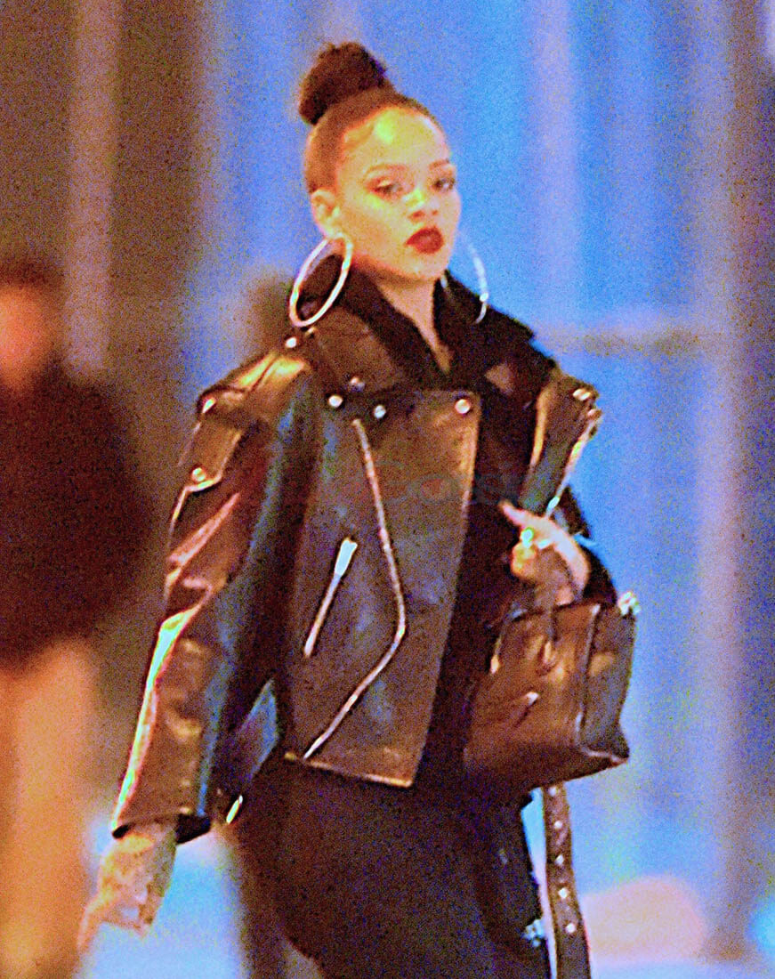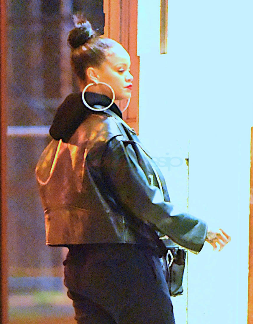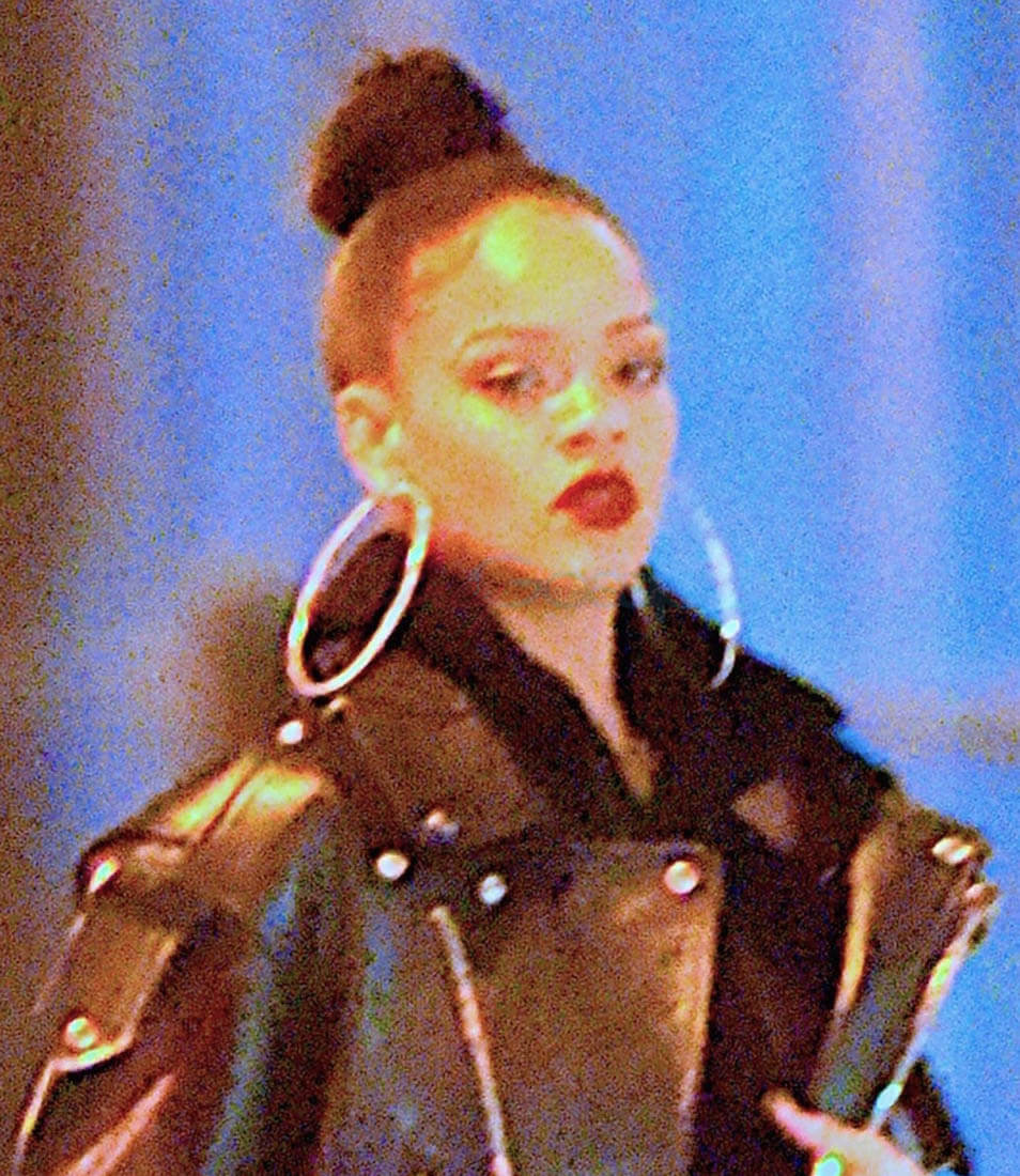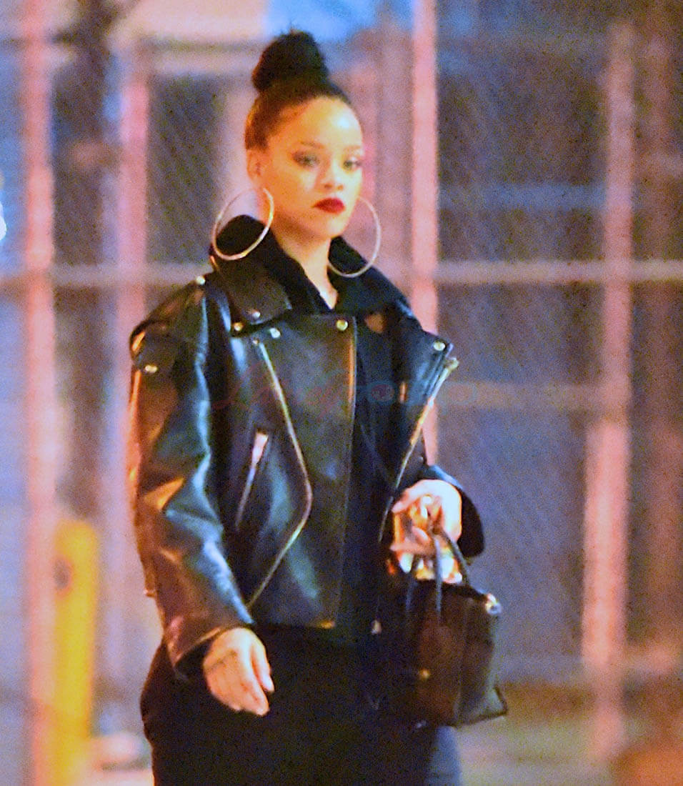Here’s Rihanna out in New York last night giving me everything with her steeze. I don’t love the sparkly pumps but that doesn’t matter when you consider that they’re being worn under SWEATPANTS and a killer leather jacket and… MY GOD those earrings. I want those earrings. I want the strength to be able to wear those earrings.
