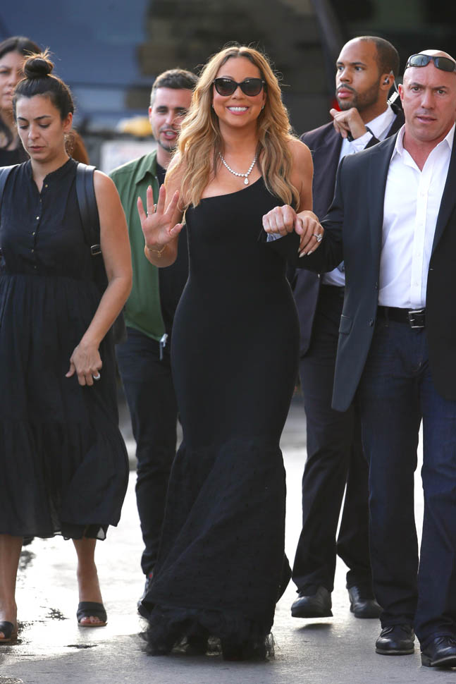 Mimi kicked off this week with a morning appearance on Live! with Kelly. I’m still surprised she was able to make it to the show because, well, as you know, oh sweetie, Mimi just doesn’t do the AM. But it was a pyjama show. Kelly Ripa and guest co-host Jussie Smollett wore standard (beautiful – look at Kelly’s pants, they’re gorgeous) sleepless. Mimi? Mimi shows up in a f-cking teddy. With heels. To sit on a stool.