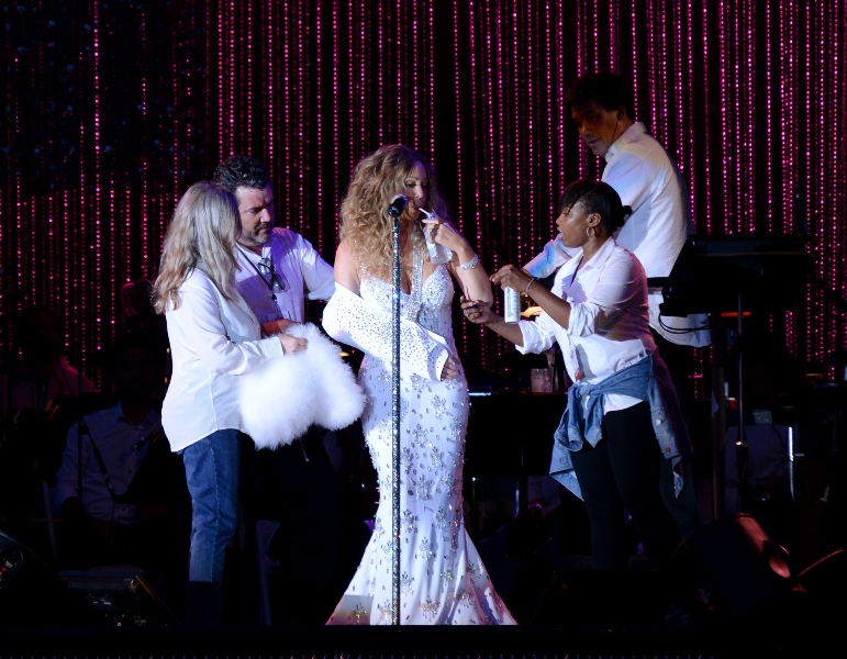 Mimi still performed this weekend. They jammed and sewed her into her gown, one size too small, and they even let her stand, all by herself, without a balloon around her to cushion her fall. As expected, she took every opportunity to remind the audience of what she had been through.