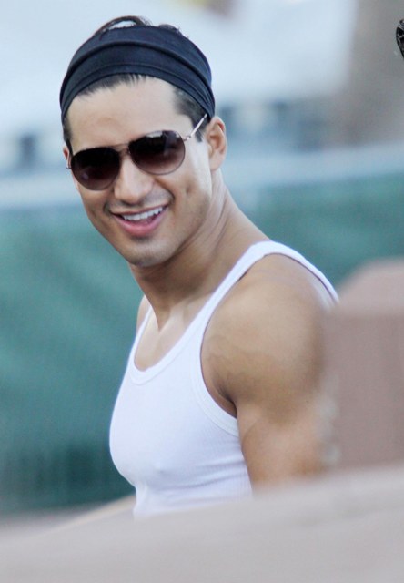 It’s the white beater, it’s his breasts, it’s his juiced out monkey ‘roid veins, and the cheese oozing out of his dimples, they may as well be festering sores to me… not conventionally repulsive, no, I know, but still, I would rather a lot of things that include public humiliation and moldy food than make out with Mario Lopez and his loser f-cking white sneaker wedges that he borrowed from Tom Cruise who borrowed them from Victoria Beckham!