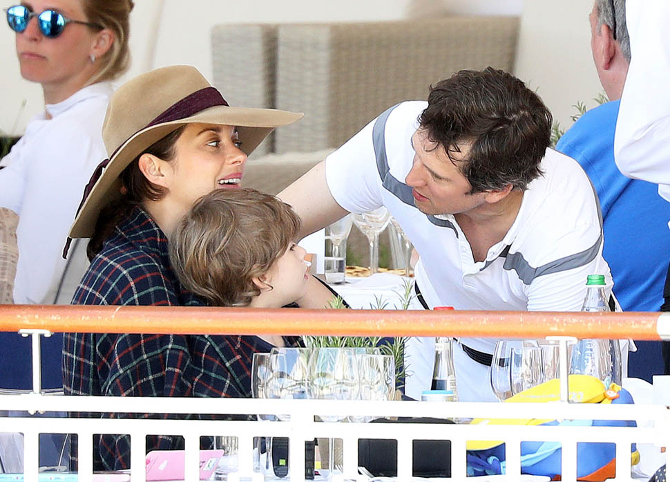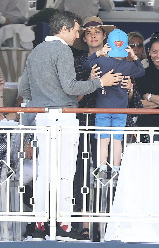 I was wondering about this a couple of weeks ago when the Cannes Film Festival was happening. Marion Cotillard was there. Hadn’t heard anything about Guillaume Canet. Here they are, together this weekend, at the Longines Athina Onassis Horse Show (obsessed that Athina Onassis has a horse show named after her) in St Tropez with their son Marcel.
