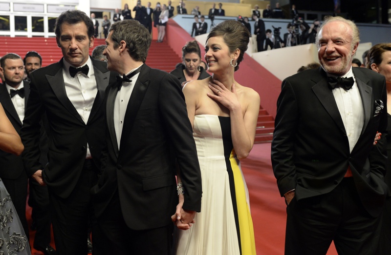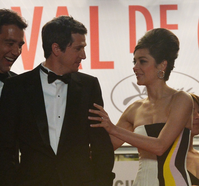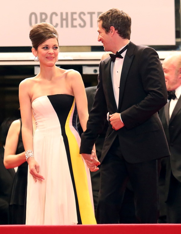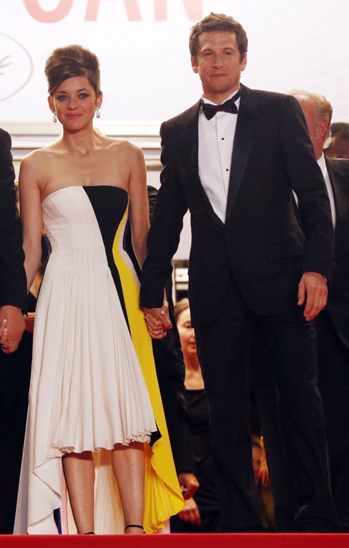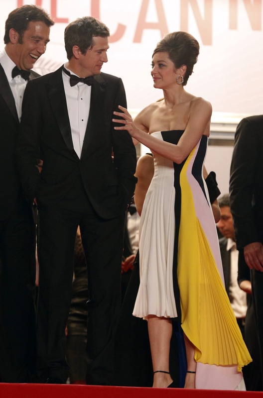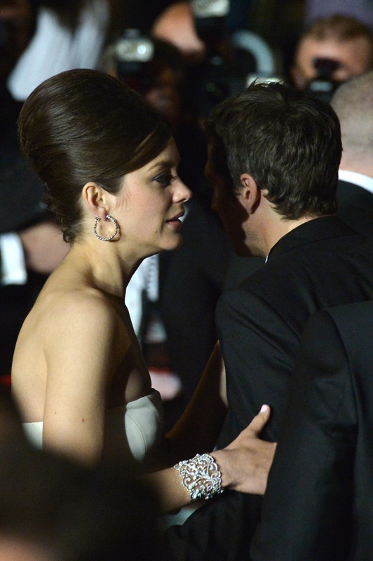 In the absence of Brange though, if Marion Cotillard and Guillaume Canet are there, I will manage just fine. They kissed at the photo call yesterday -- click here for a refresher -- and these are some great shots of them together at the Palais. Marion, as always, is in Dior (God she is loyal) and I love the white soles on her shoes but I love more how happy and how proud of him she seems. Like I said yesterday, almost giddy. That face just won’t stop with the beauty, non?