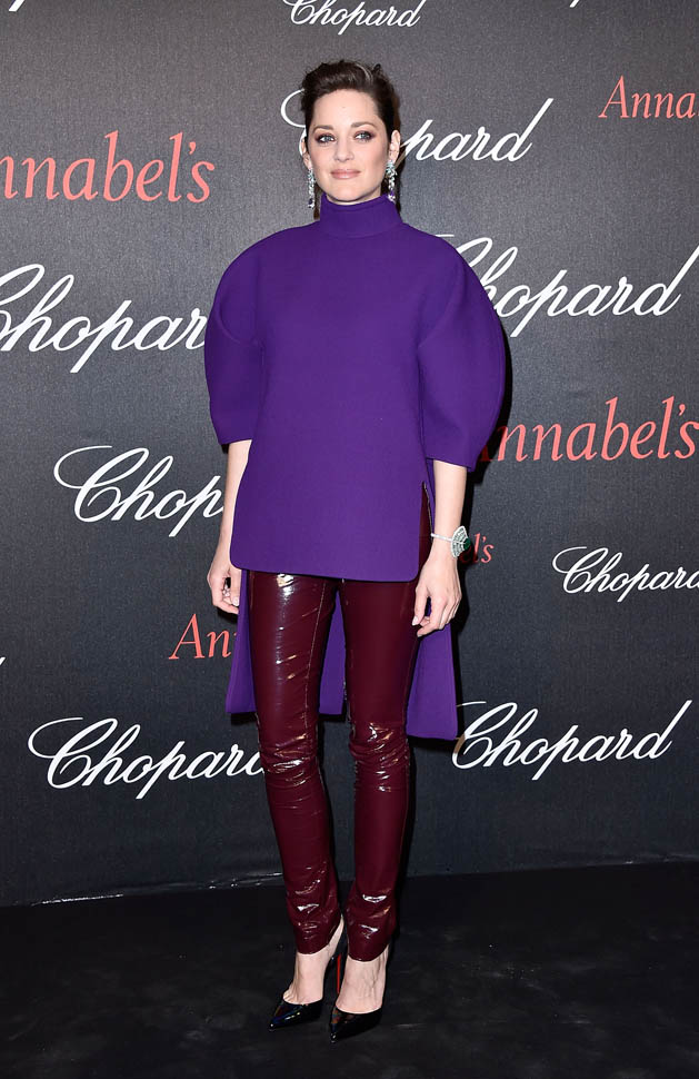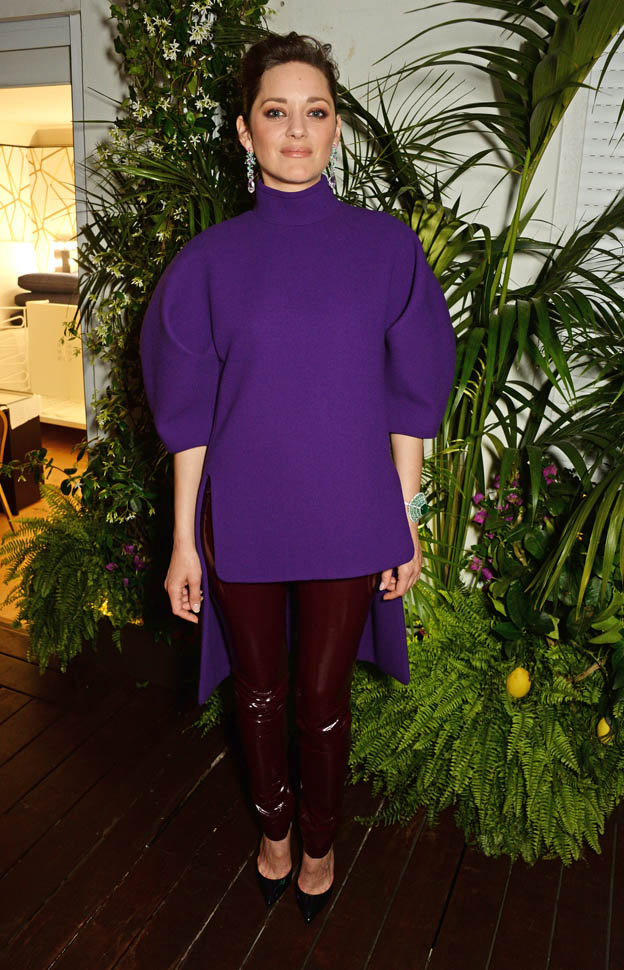This purple structured top over Bordeaux leather pants, OH MY GOD, maybe one of the best outfits we’ve seen all year and COME ON!