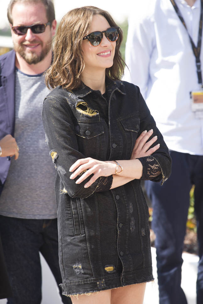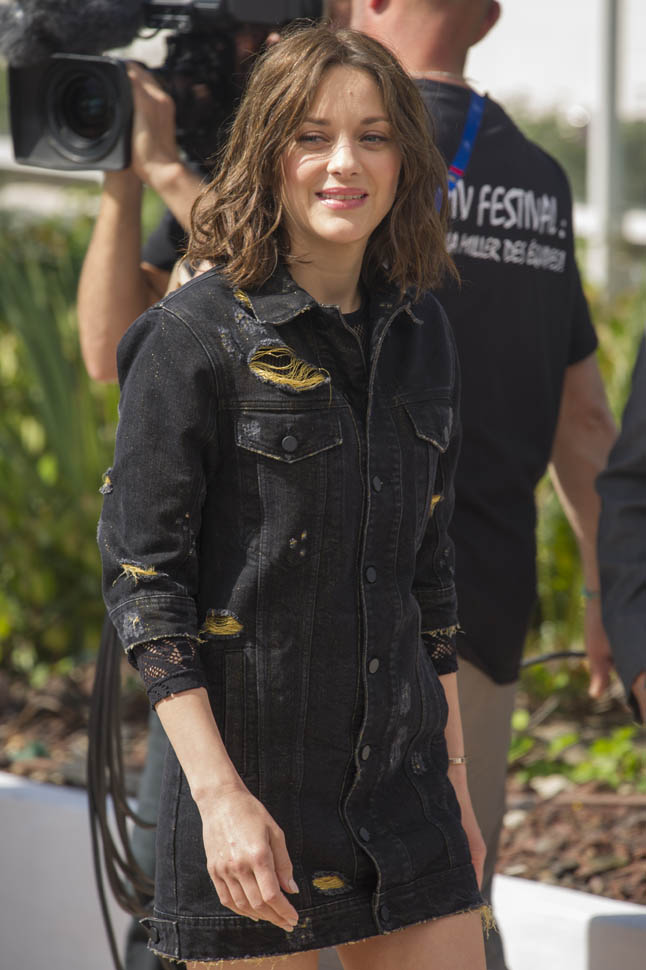 But look at her at the photo call. In a denim dress made to look like a long jean jacket and a lace top underneath just as a bonus.