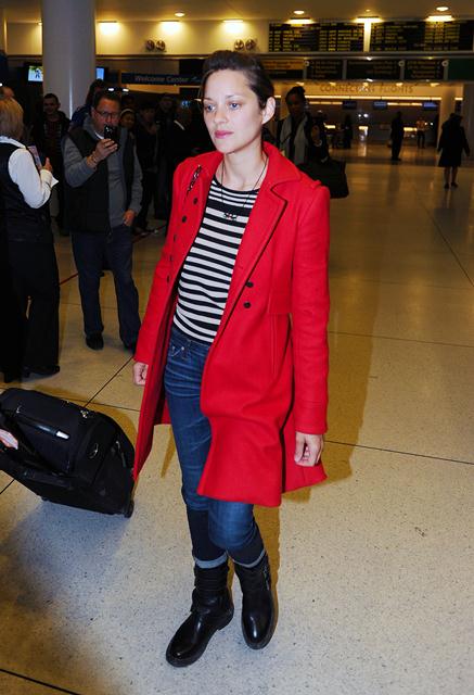 Carpets & Candids: Marion Cotillard red coat and stripes