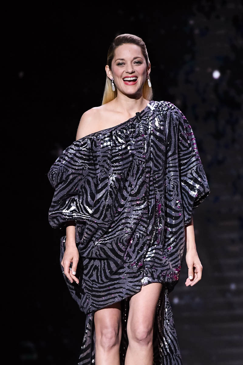 Marion Cotillard is not on the list of Oscar presenters this year. I will miss her. Especially after seeing her at the Cesar Awards in Paris last night wearing what's basically my dream dress. This puffy silver and black dress. It's Halpern. It's amazing. Those voluminous sleeves, the airy feel through the body, short in front, mulletted in the back - I'm obsessed. She looks SO good.