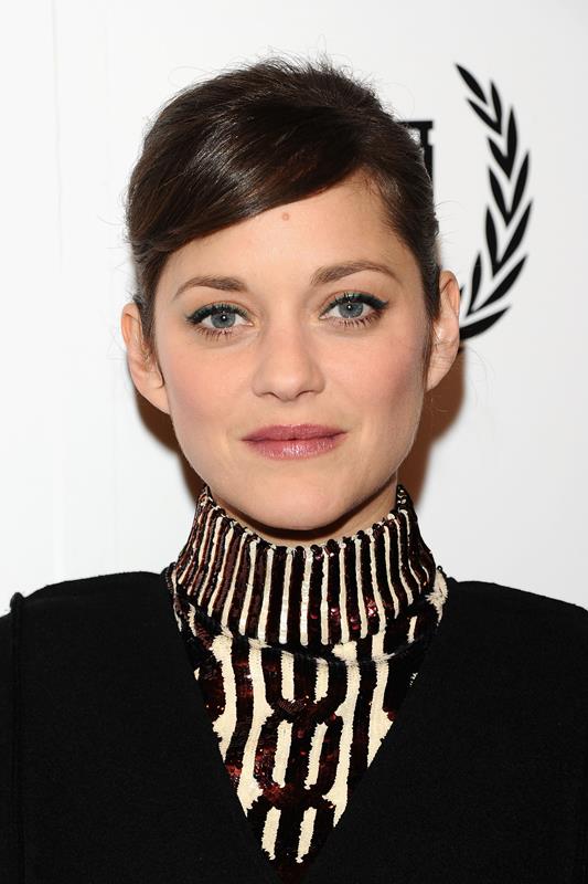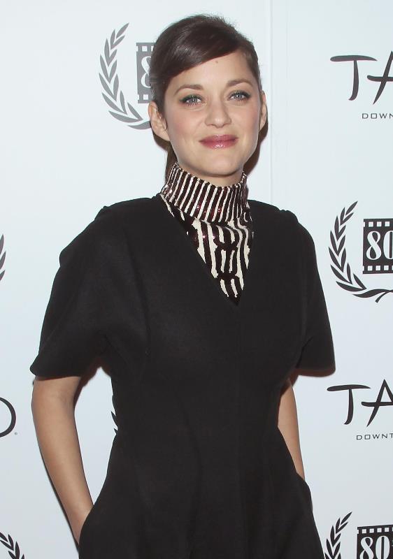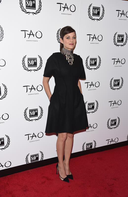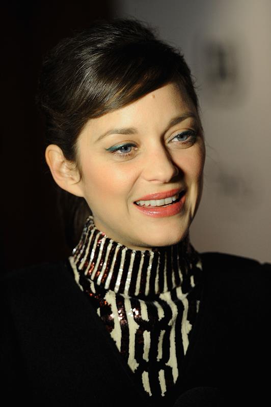 Marion Cotillard was in New York yesterday. She stopped by The View and then she collected her Best Actress award from the New York Film Critics Circle in the evening in a high collar black and white cocktail dress that’s perfect on her.