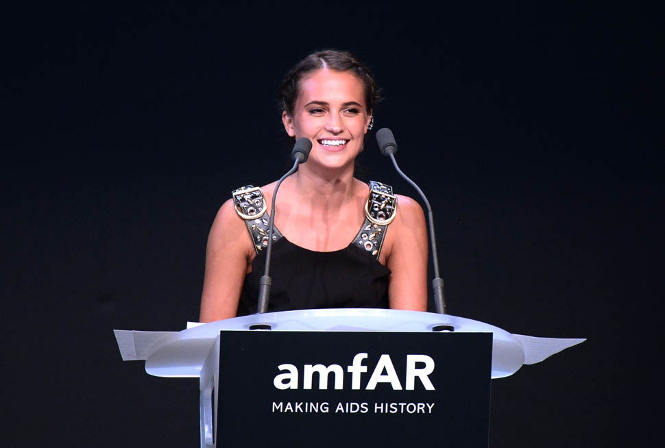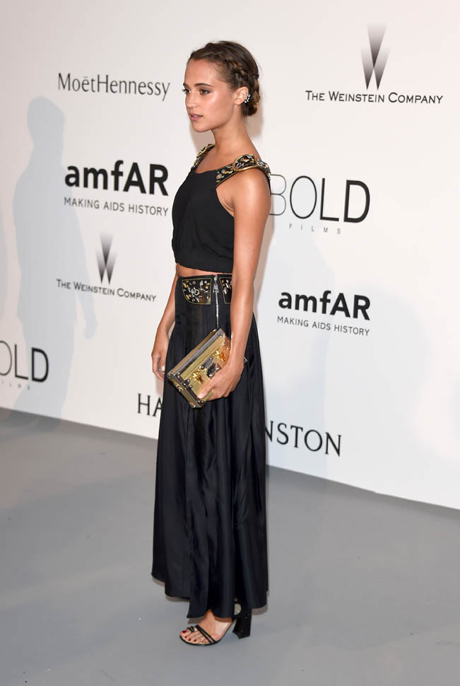 Not sure if Marion will be joined by Guillaume Canet at the Palais. He was just in Paris at a show jumping event. Also this green Jean Paul Gaultier dress is probably the worst choice I’ve ever seen her make. As for whether or not Michael will have a date – Alicia Vikander is in Cannes too, and she was also at the amfAR gala, though, as far as I know, there are not shots of them together. I LOVE what Alicia’s wearing. And with her hair back like that, her face is just perfect.