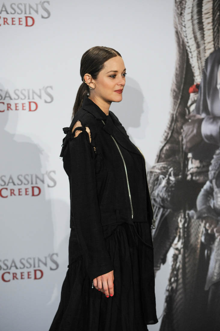 It would bother me if someone called it a pregnancy outfit. Like as if to say that she wouldn’t wear it if she wasn’t pregnant. I’m not pregnant and I would wear it, no problem. I love the jacket. I love the rips at the shoulder. And the loose fit of this dress, and even the mulleting in the skirt. Check out the ear cuff on her right side too. Sick, right?
