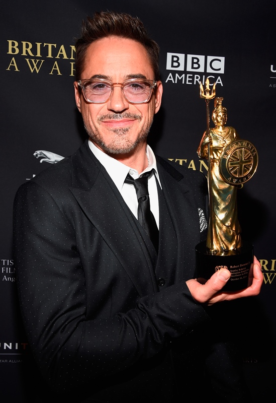 RDJ received the Stanley Kubrick Britannia For Excellence In Film. During his speech, he acknowledged his co-star in The Judge, Robert Duvall, with a shout-out to, yes of course, Marvel: