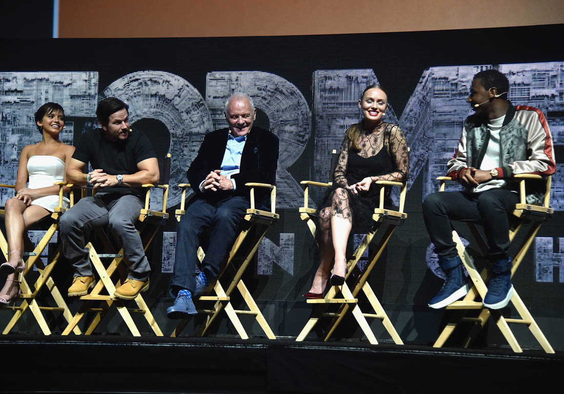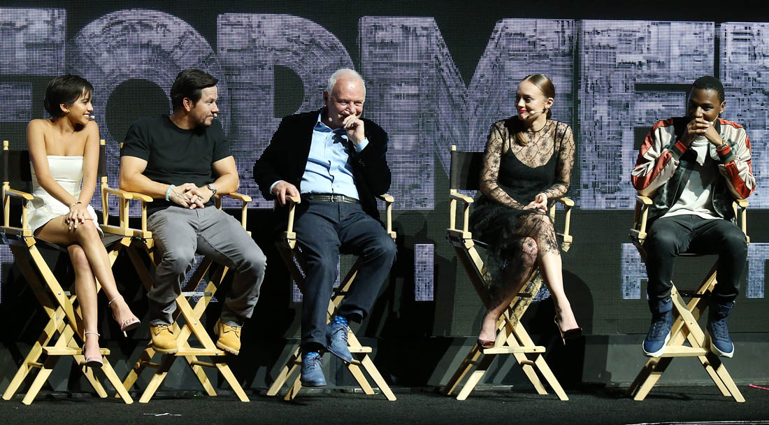 CinemaCon continues in Vegas, and it was Paramount’s turn to give the ol’ razzle-dazzle yesterday. The best they could come up with was Transformers: The Last Knight and I don’t even have a joke for that. There to present a fifteen-minute sneak peek were Mark Wahlberg, Michael Bay, Jerrod Carmichael, Isabela Moner—who is also the recipient of this year’s CinemaCon Rising Star of the Year award—and Anthony Hopkins. “I’m so confused about Anthony Hopkins being in this movie,” Lainey said. “Why?” I replied. “He’s in Thor.”