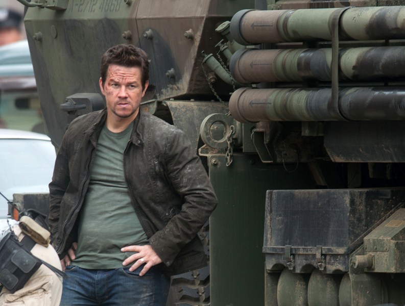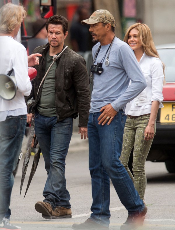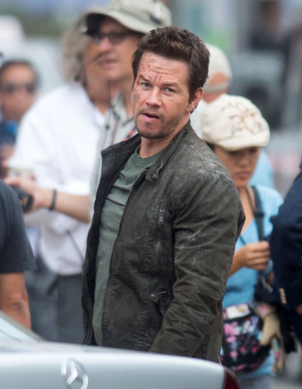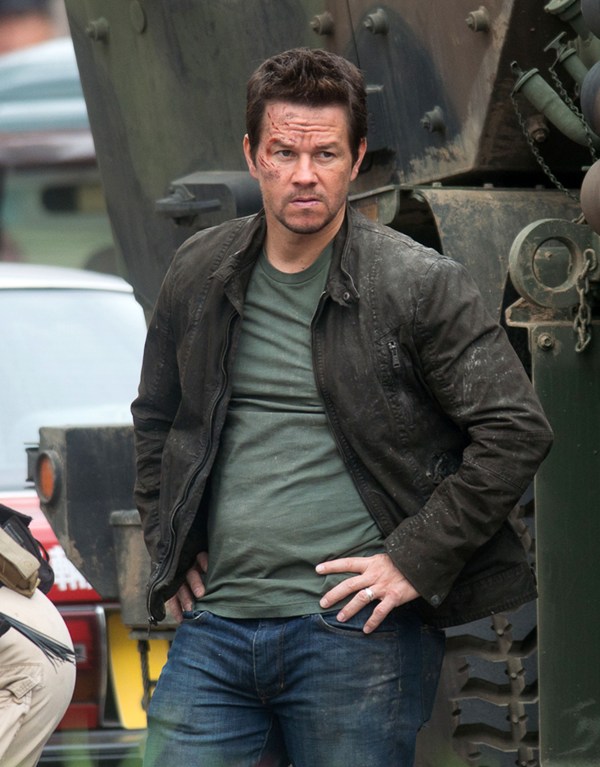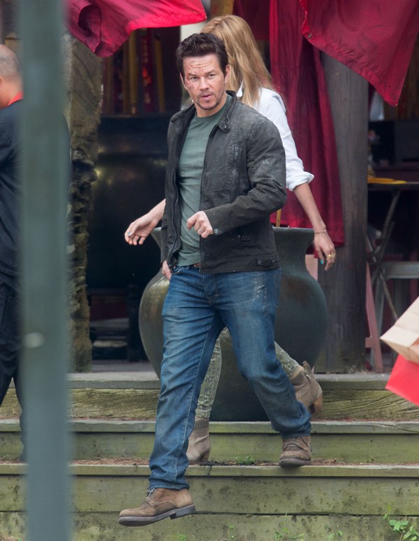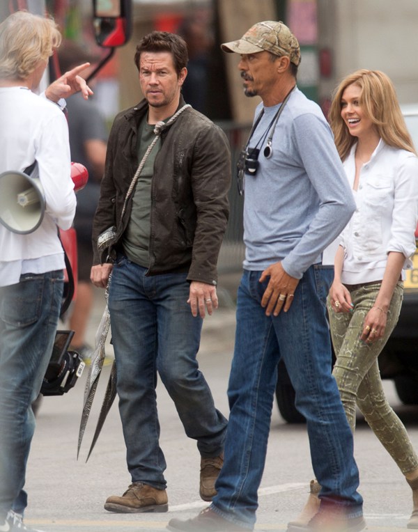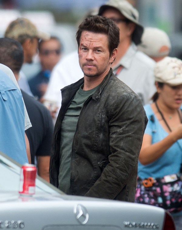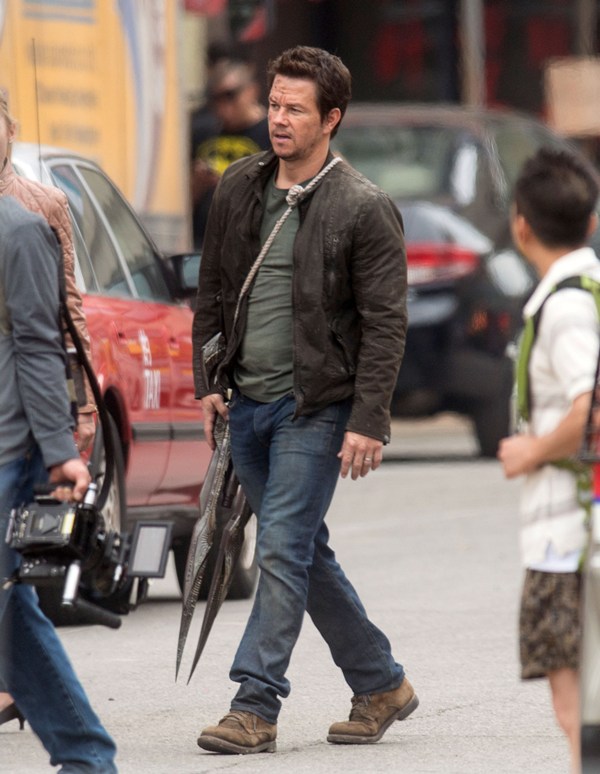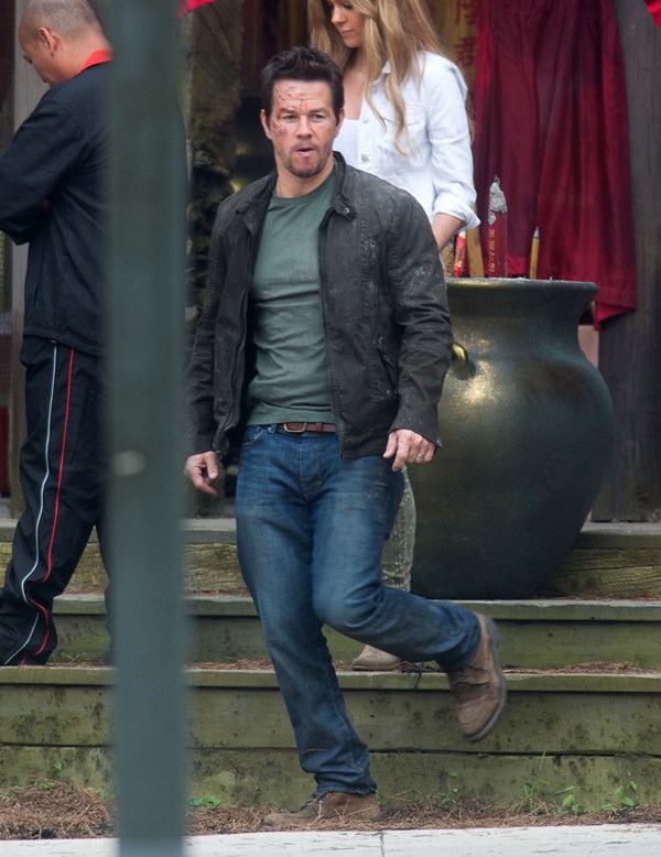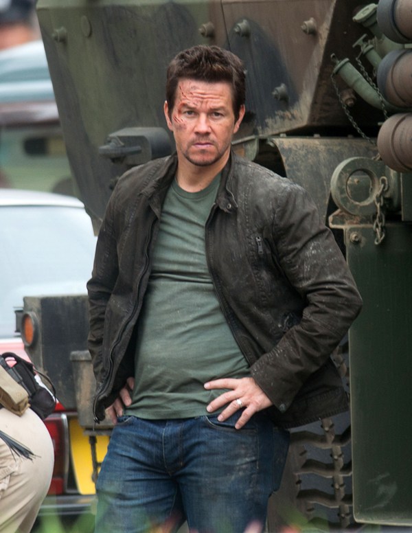 Attached below – Wahlberg on the set of Transformers yesterday in Detroit. Not exactly the same kind of movie…