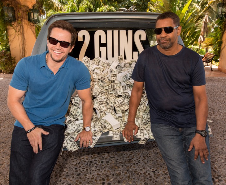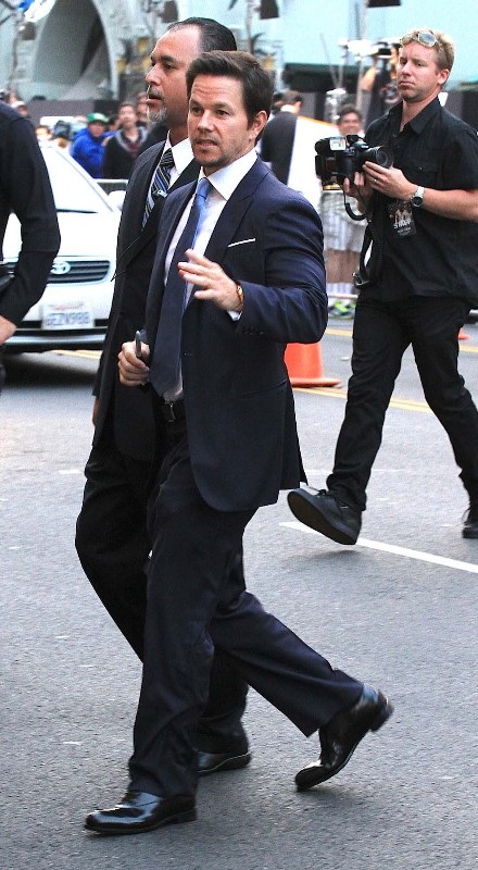 Denzel Washington and Mark Wahlberg were at Summer of Sony the other day promoting 2 Guns. When I saw these photos, I wrote to Sarah from Cinesnark asking her if she thought Mark acted like Mark when he was around Denzel, all heavy-dicked and thick-armed, or if she thought he’d be deferential instead. Sarah didn’t think Mark would change. She’s probably right.