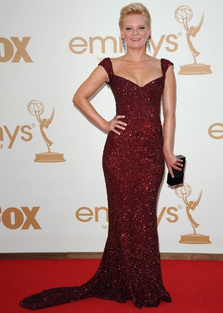 This is Martha last night beating out every other red - and there were so many of them. It may be because I have a thing for cap sleeves. And the neckline is just so flattering. And the red is dark enough that you can actually differentiate it from the carpet.