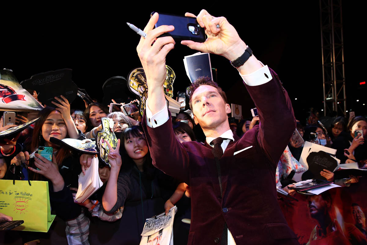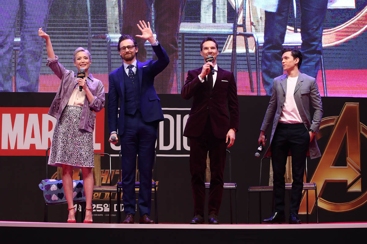 Where is the Avengers Godfather? They’ve held him back until we’re inside two weeks to the movie’s opening day while some of the others have been already dispatched overseas to start working on the international box office. Benedict Cumberbatch, Tom Hiddleston, Pom Klementieff, and Tom Holland are in Seoul today after attending a fan event in London on the weekend. RDJ is expected to join Benedict in Singapore on Monday though for another fan event.