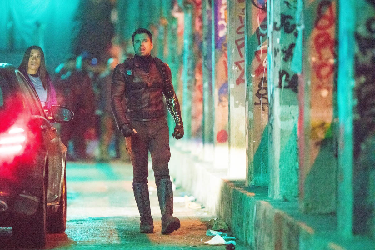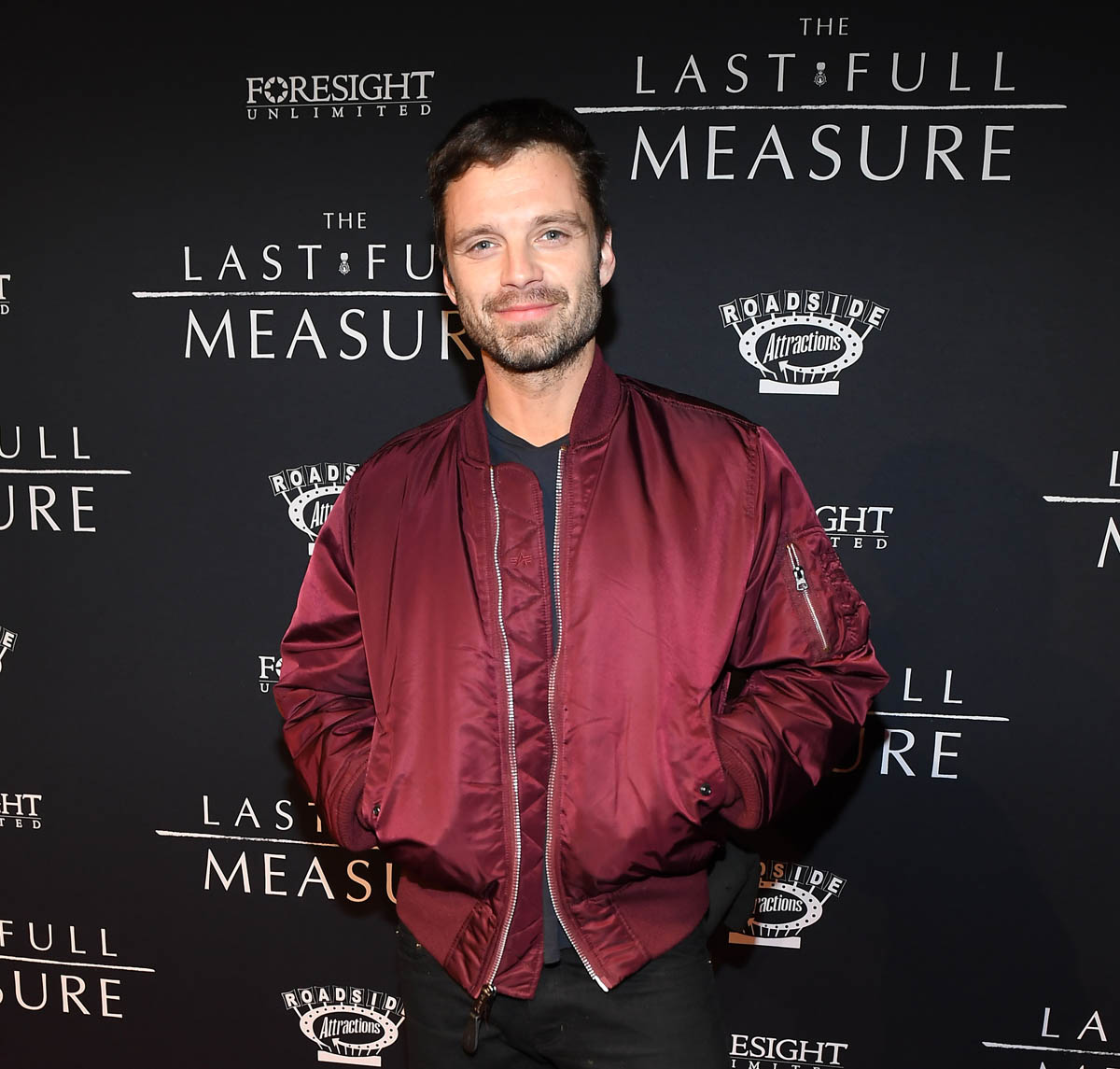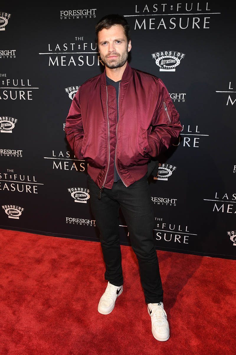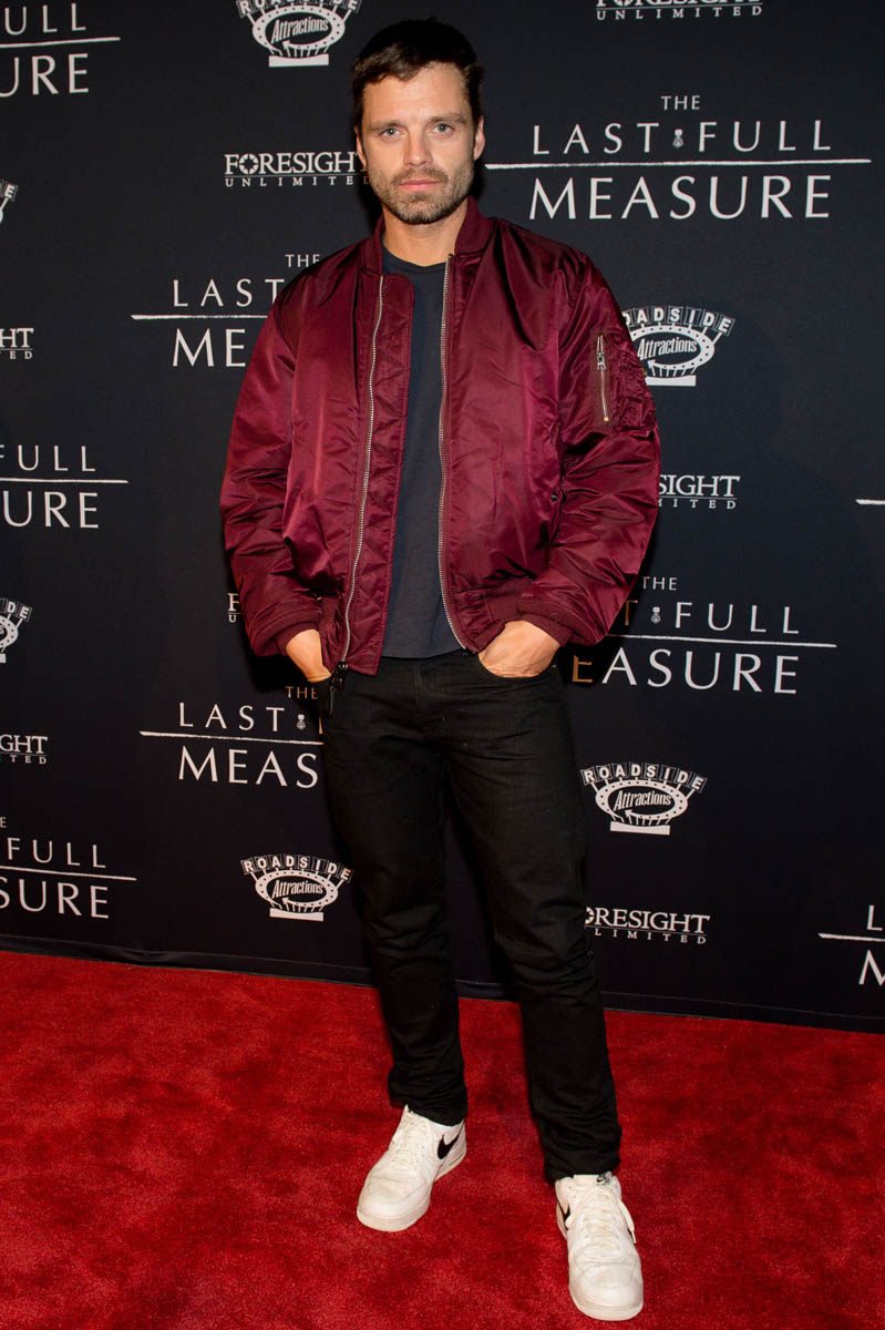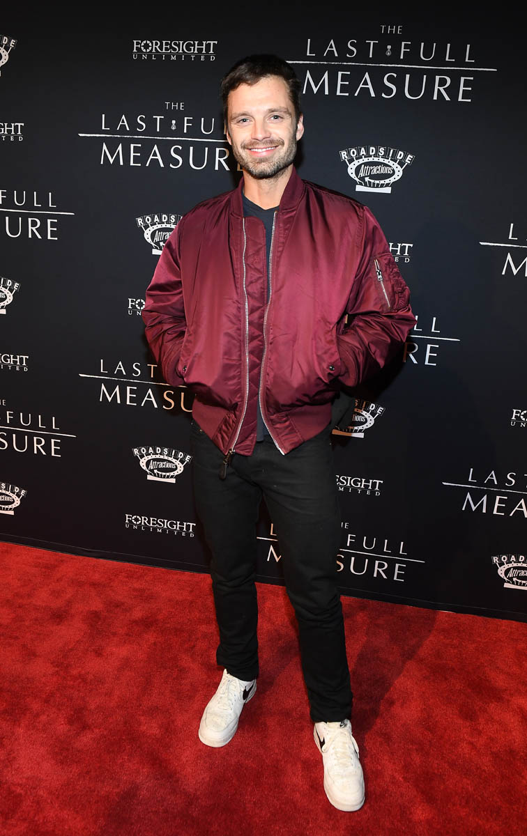 Attached - Sebastian Stan at The Last Full Measure Atlanta red carpet and on the set of The Falcon and the Winter Soldier in January.