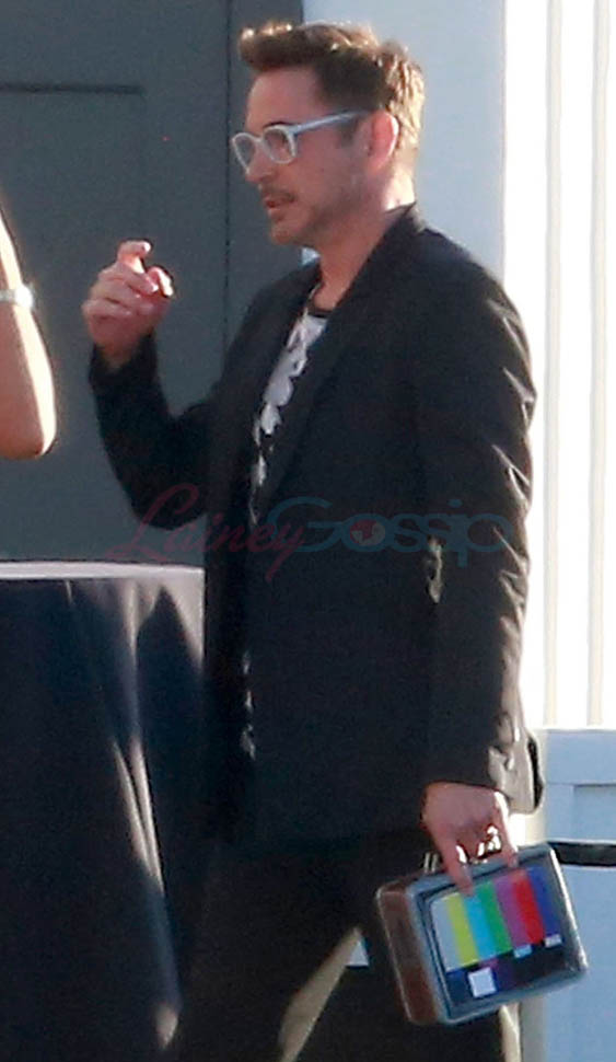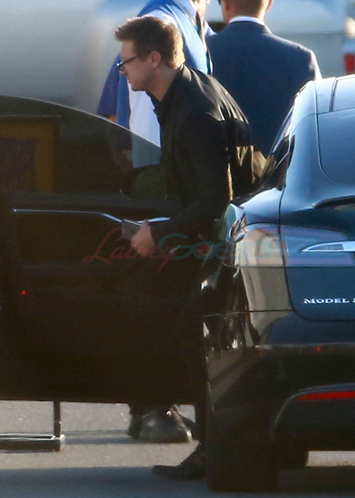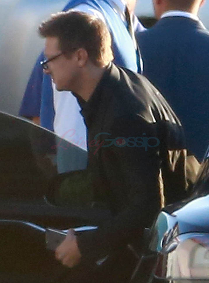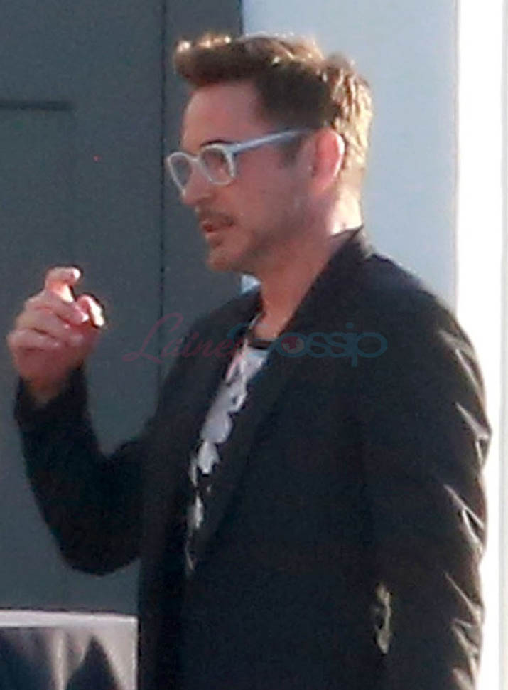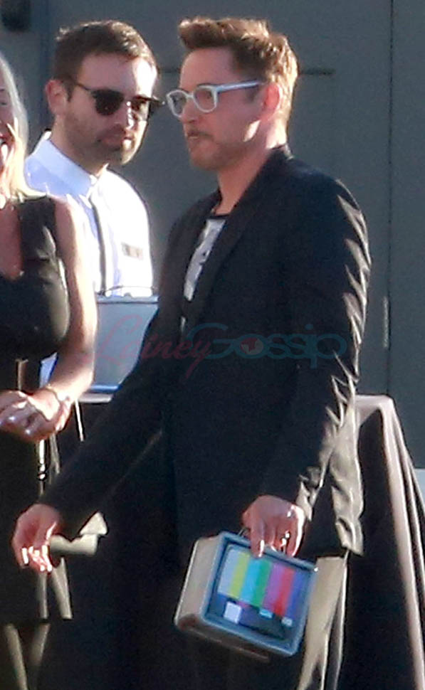 Attached - Jeremy Renner and Robert Downey Jr. arrive for RDJ's 50th birthday party on Saturday.