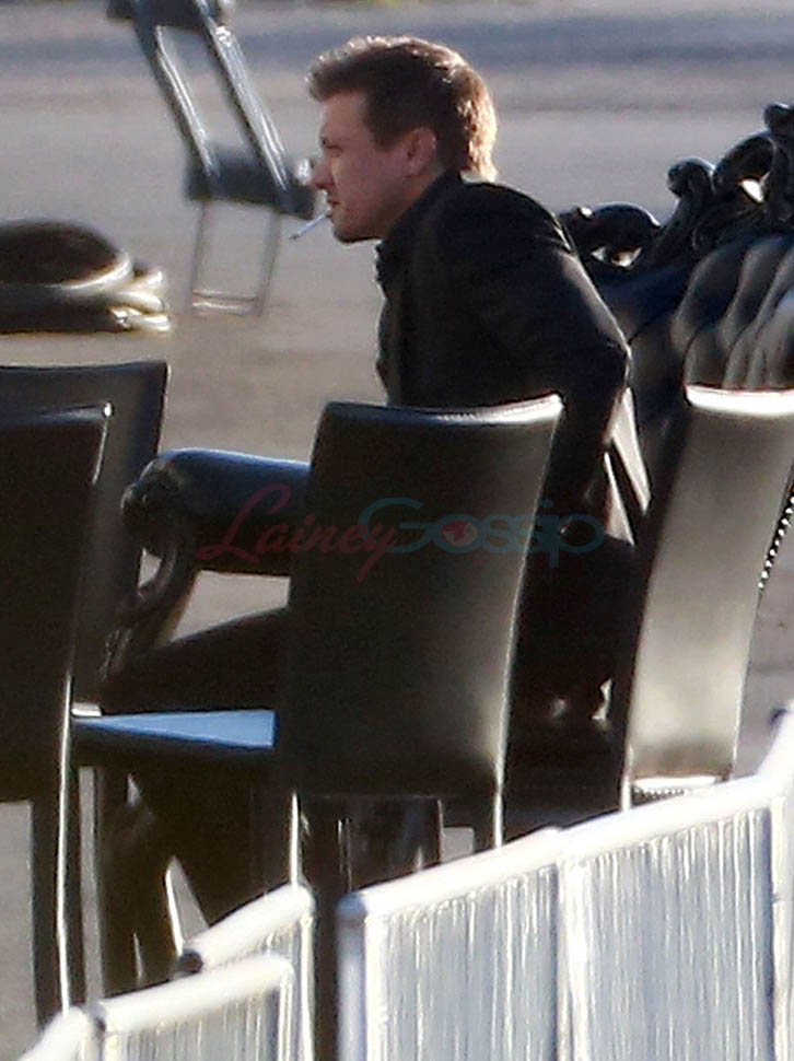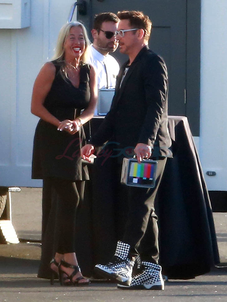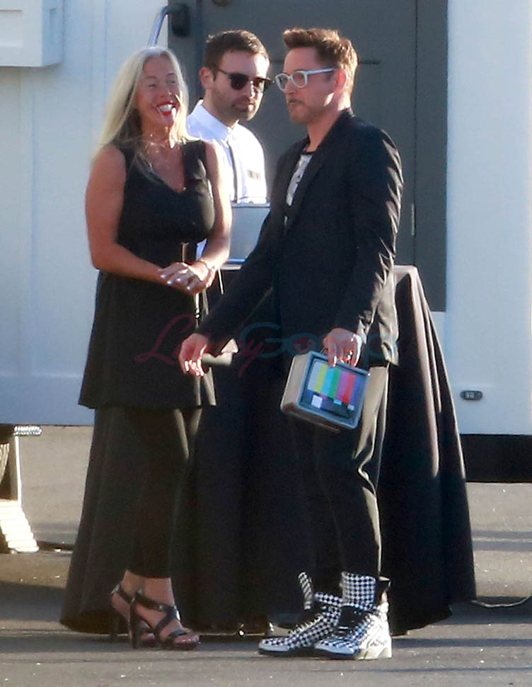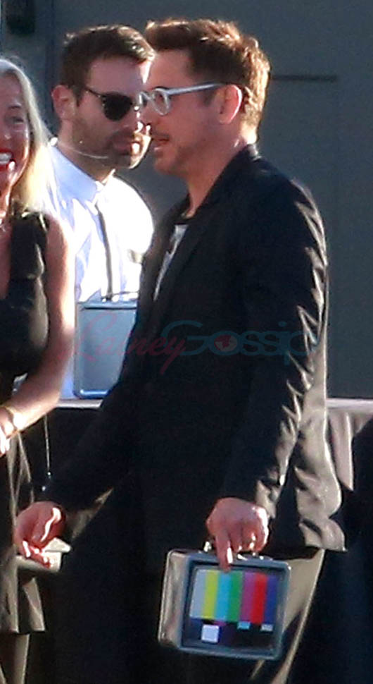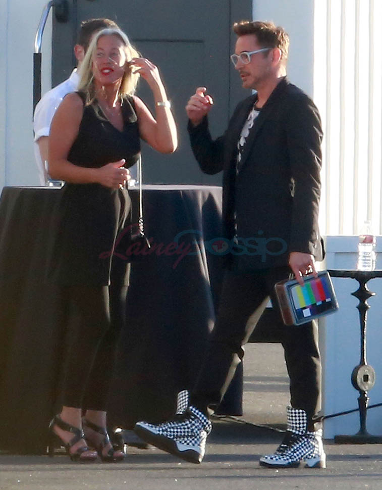 Attached - Jeremy Renner and Robert Downey Jr. arrive for RDJ's 50th birthday party on Saturday.