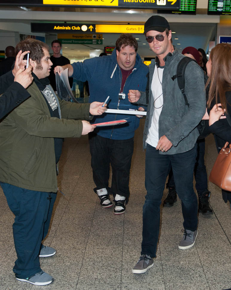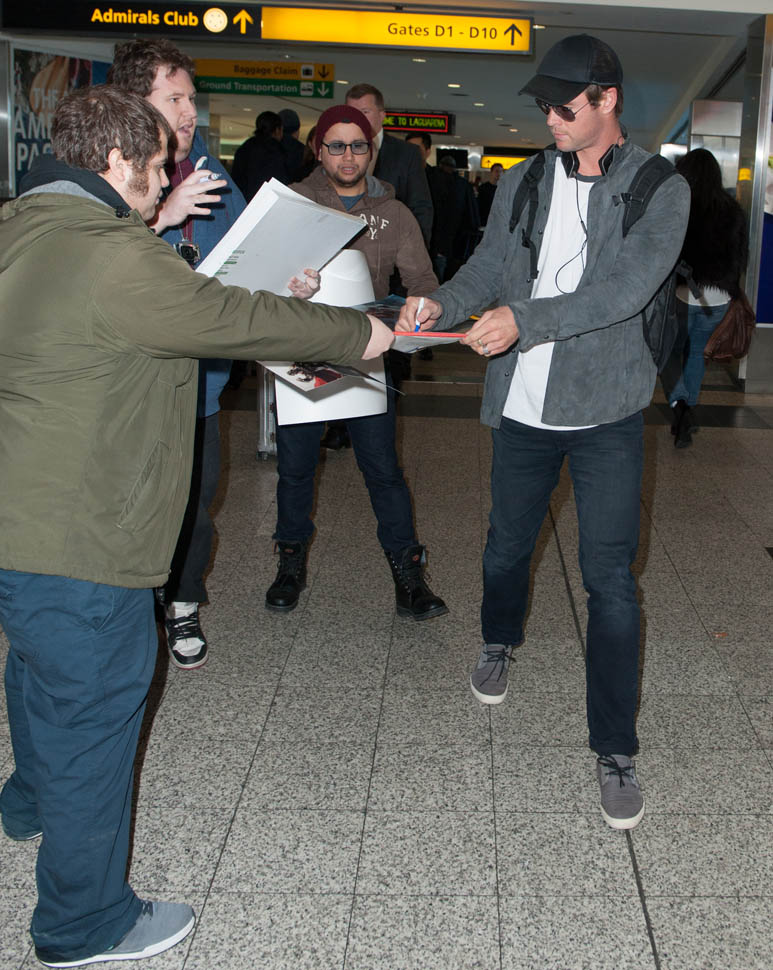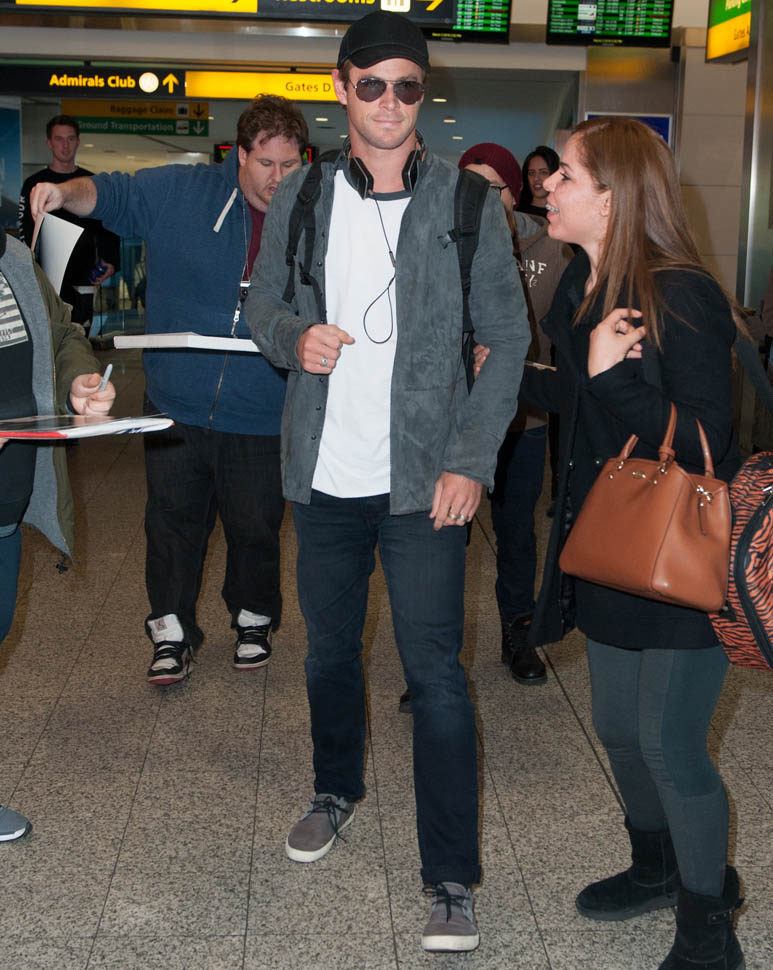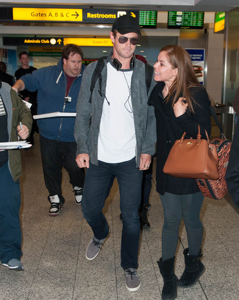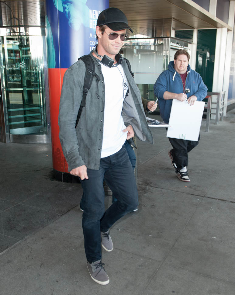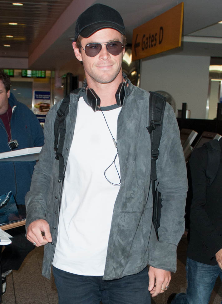 Attached – Chris Hemsworth arriving in NYC the other day in advance of hosting SNL this weekend.