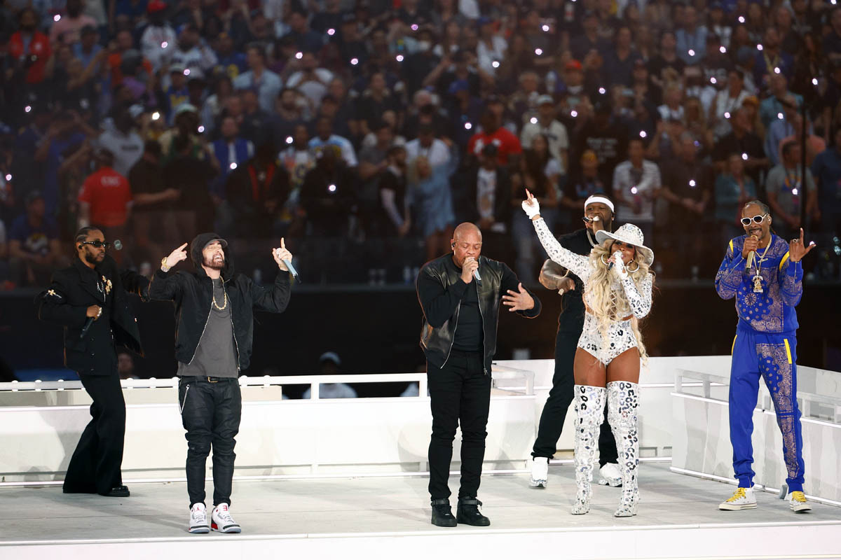 It was always going to be the Super Bowl of celebrities with the game happening in LA. And indeed, last night’s game was probably the most celebrity-heavy Super Bowl in years, if not decades. The halftime show had something to do with it too. The halftime show is the only reason I turned it on late in the second quarter, looking up from my phone only when they stopped play, because that’s when they had the cameras shooting into the crowd and they had star after star after star in the stands to target.