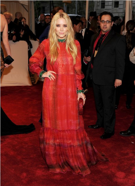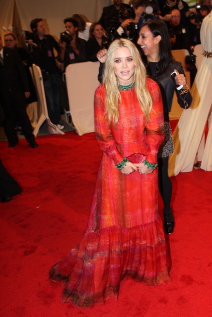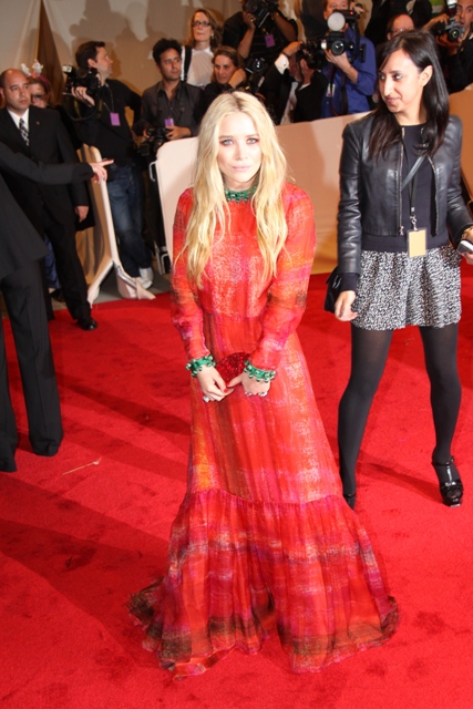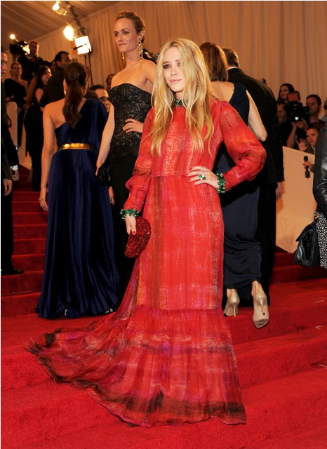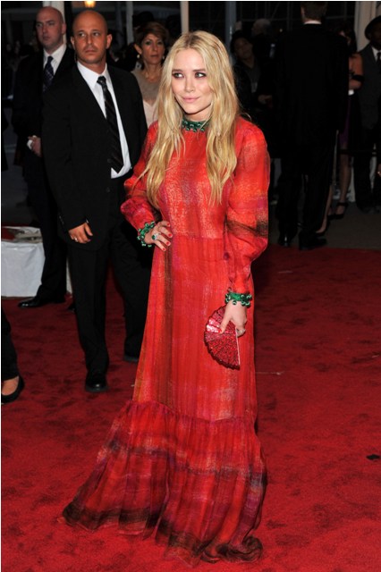 The problem with Mary-Kate however, in this red Givenchy peasant business, is that if style is supposed to push, well, we’ve all seen her in this before. So... points docked for sameness, right?