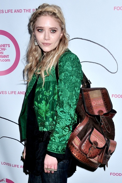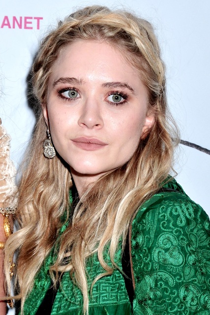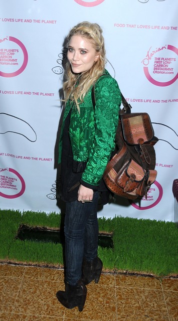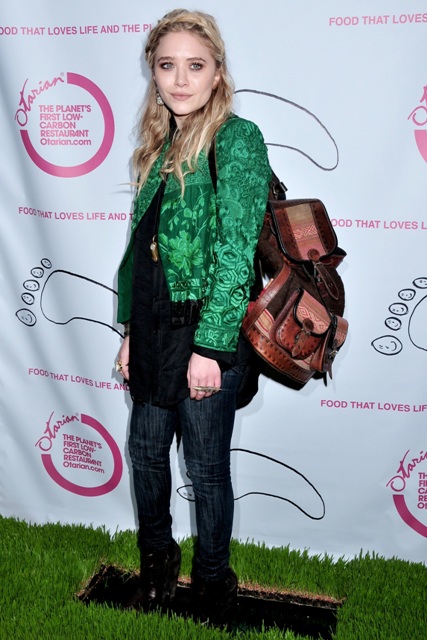 So MK Olsen turned up yesterday at the Grand opening celebration of Otarian: The Planet's Most Sustainable Restaurant on Bleecker Street in New York. She attired herself in the spirit of the establishment in a green jacket and a full prune face. Awesome. But it really is. Because while she might be weird and remote, MK also looks healthy. Her skin is good. She’s not disappearing, and I know you will fight me on this but I do love the messy prairie hair.