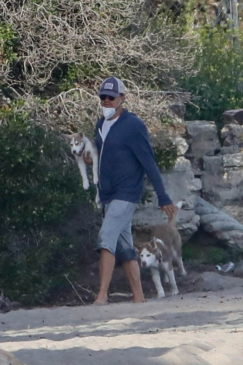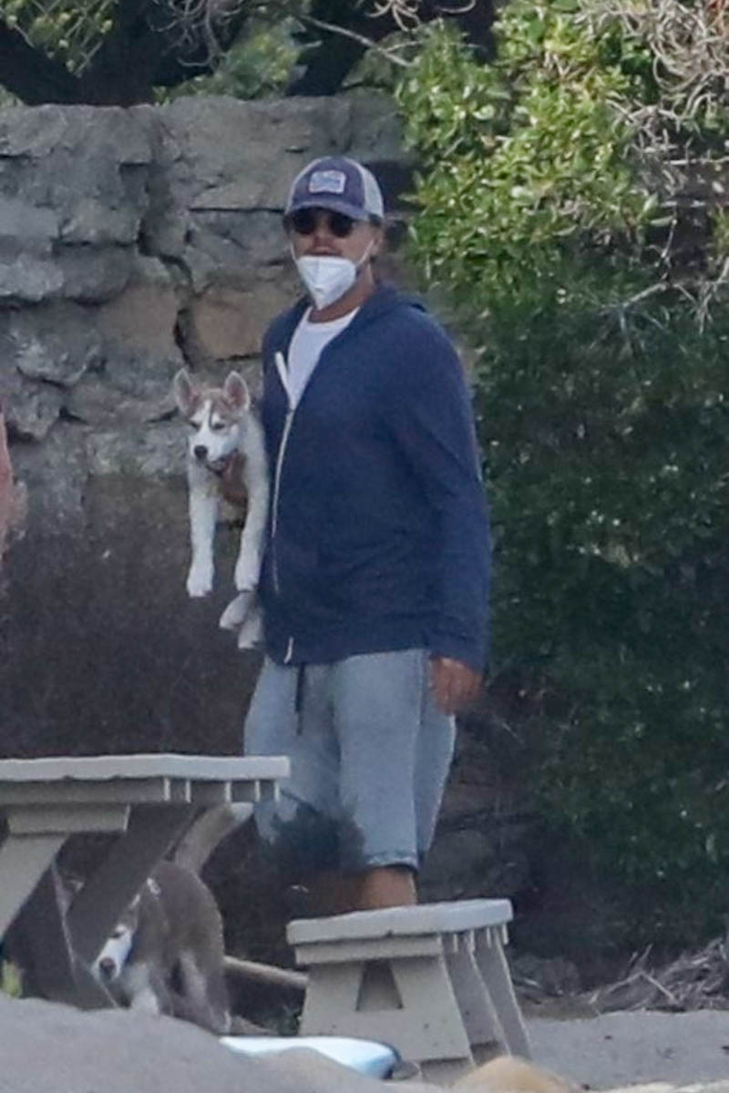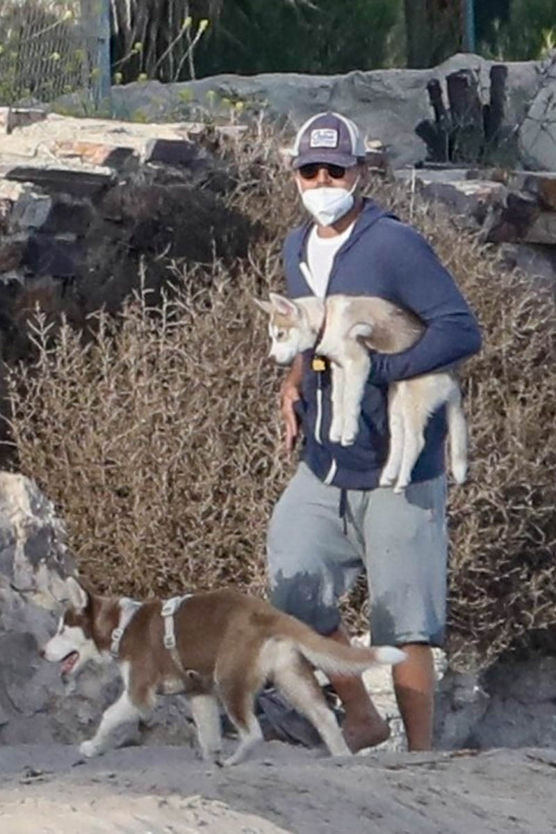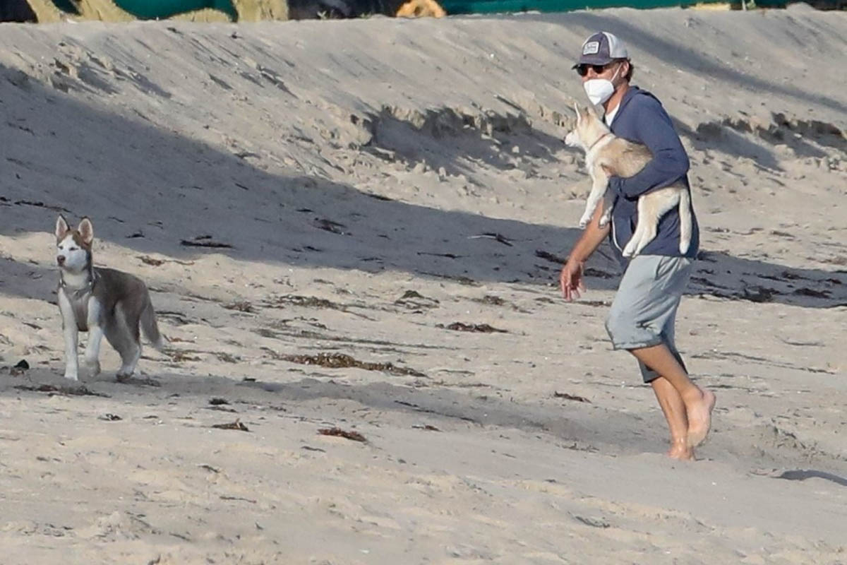Leonardo DiCaprio was photographed at the beach in Malibu this weekend with the two puppies he and Camila Morrone have been fostering. They’re called Jack and Jill and they are SO cute, I can’t stand it. Initially Camila referred to it as “fostering”. Lately her language on Instagram has switched to “adopting”. Which means that after the lockdown… will she and Leo still be living together? Camila might be the paperwork, public “parent” of Jack and Jill, but Leo’s parenting too. The dogs are his too. I guess there are no worries about this for another two years.