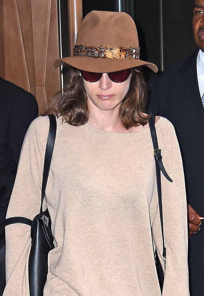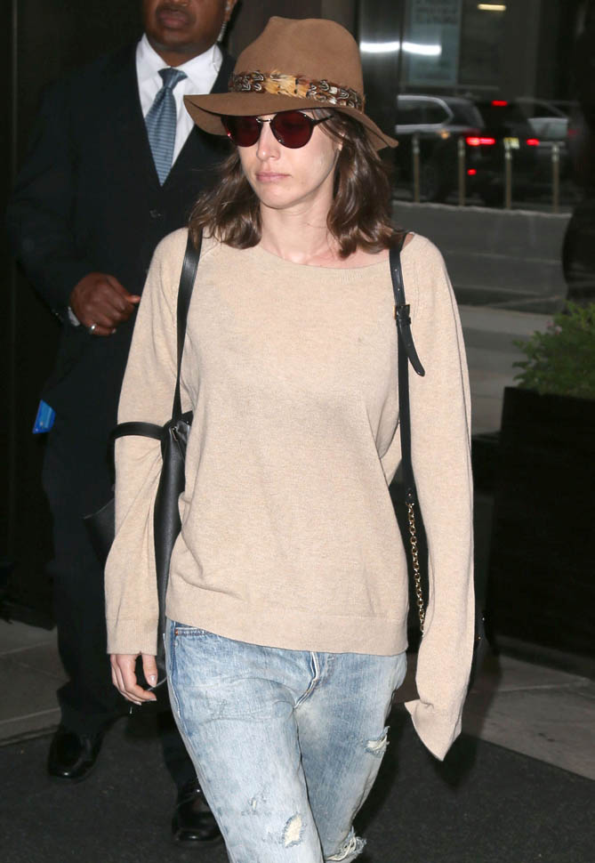 Attached - Lizzy Caplan leaving her New York hotel last week.