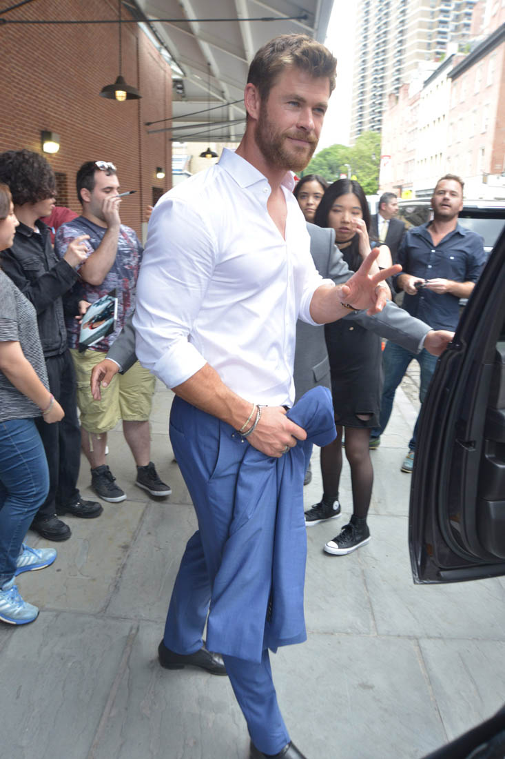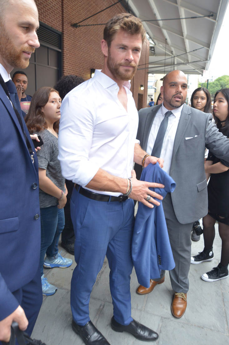 Next is Thor, Chris Hemsworth. Chris Hemsworth has been spending most of his free time in Australia these days so to be in New York, just for a fashion show? Question answered: