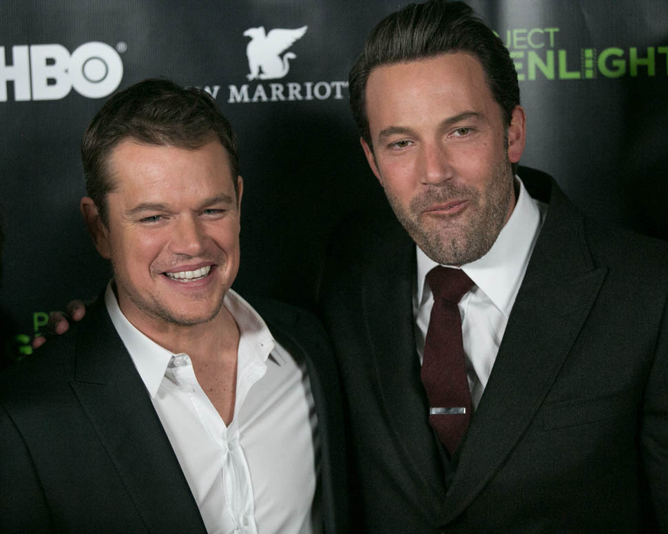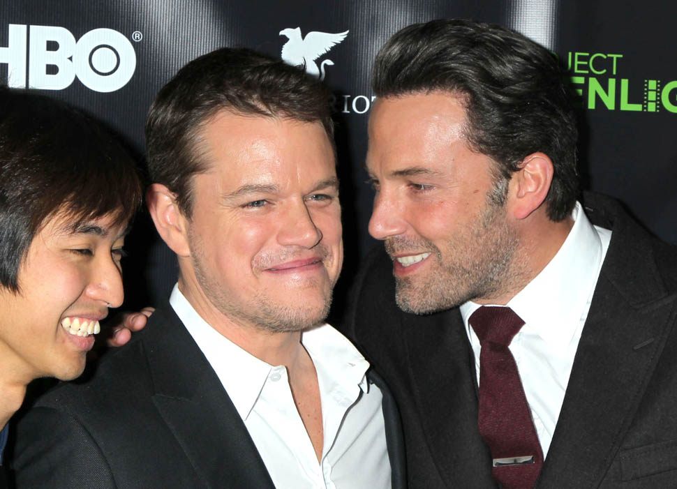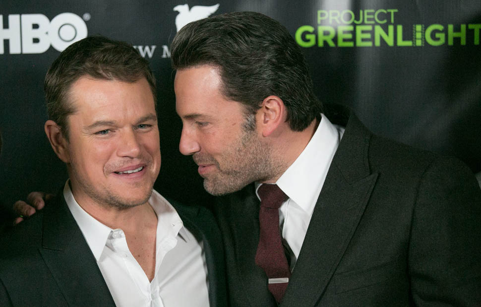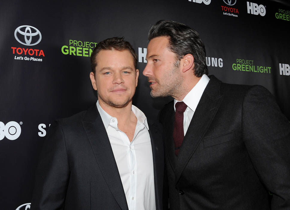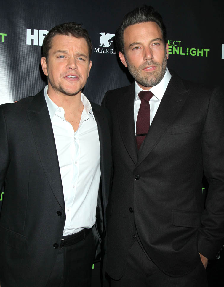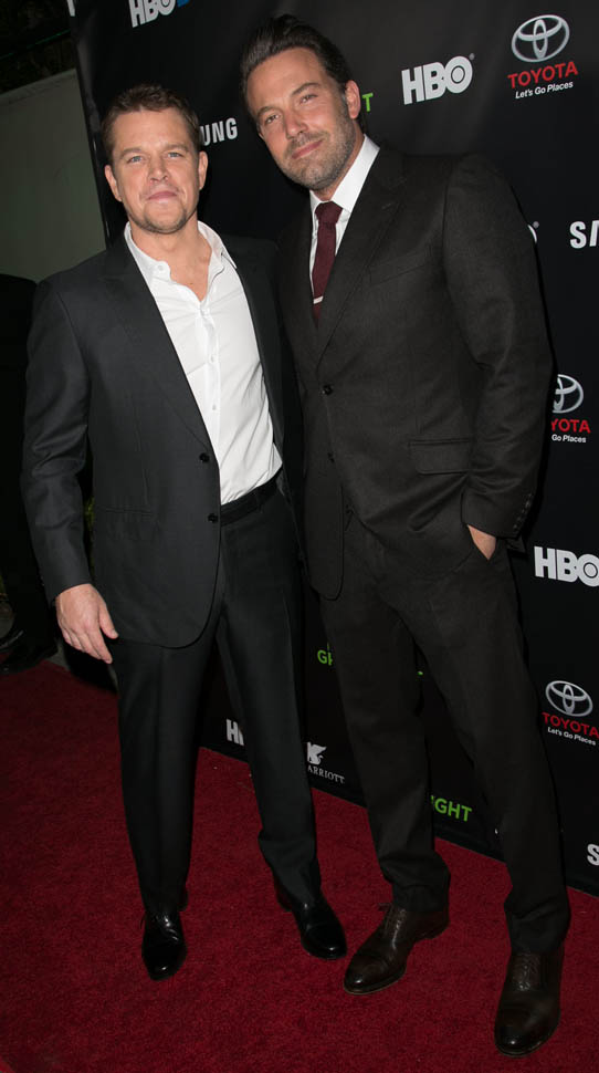 Matt and Ben were together again on Friday night at the Project Greenlight event for HBO. It’s not often they’re on a red carpet together. So when they show up, side by side, and being all Matt+Ben, like arm in arm and whispering jokes to each other and laughing their secret laughs, well, we eat that sh-t up. They are, and will always be, each other’s best date.