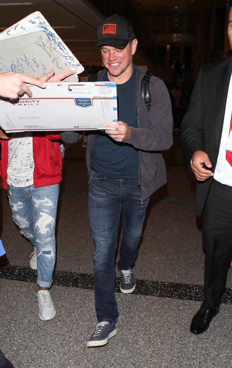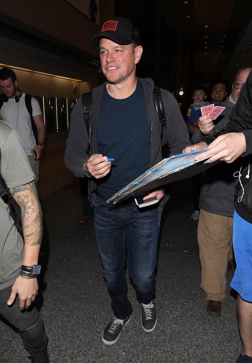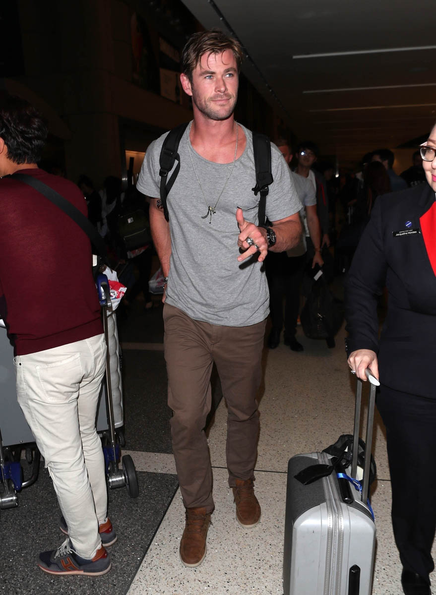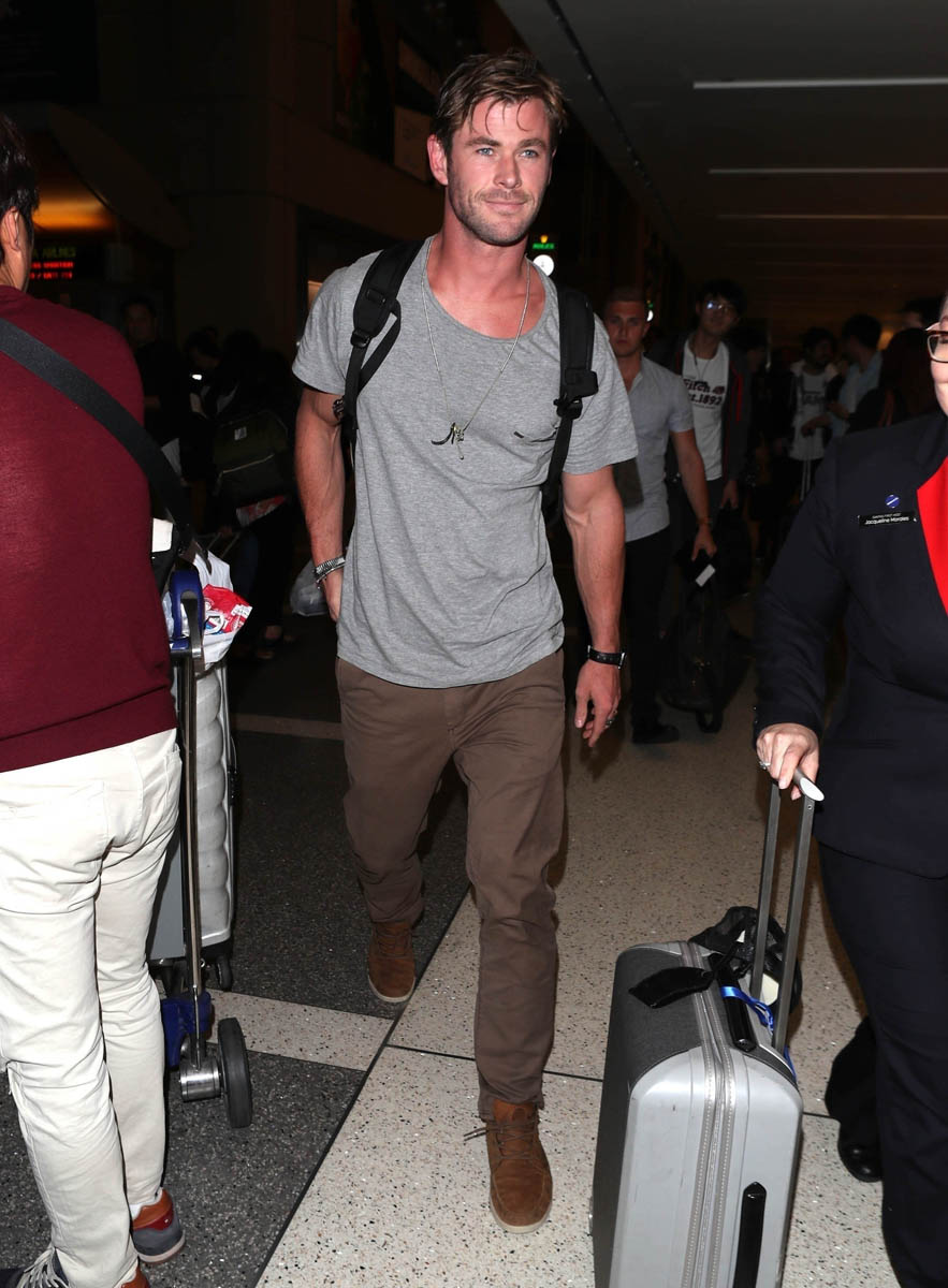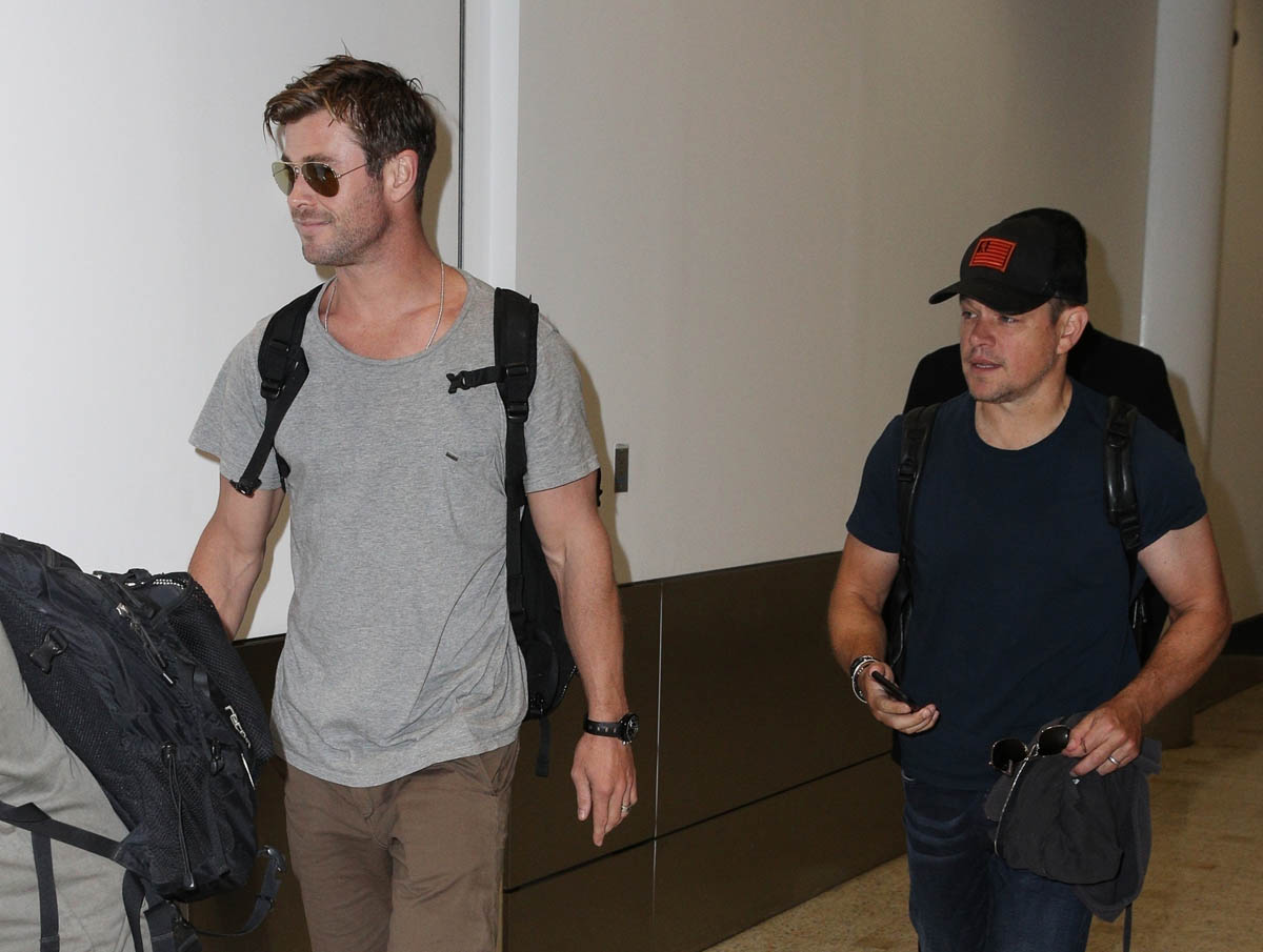 Chris returned to Sydney on Saturday and he was joined by his BFF Matt Damon. Matt and his family spent Easter in Australia with Chris and his family. Matt only returned to LA last week, around the same time as Chris. His family evidently didn’t join him because, presumably, he came back with Chris to return to his wife and kids. So it’s been over a month, which makes sense because you don’t go all the way to Australia only to hang for a weekend. There were reports a few months ago that Matt was planning to move his family to Australia. This only adds to that speculation. Clearly they intend to stay even longer because otherwise, given the distance, he’d hang back in LA for only a few more days if his family would be home soon.