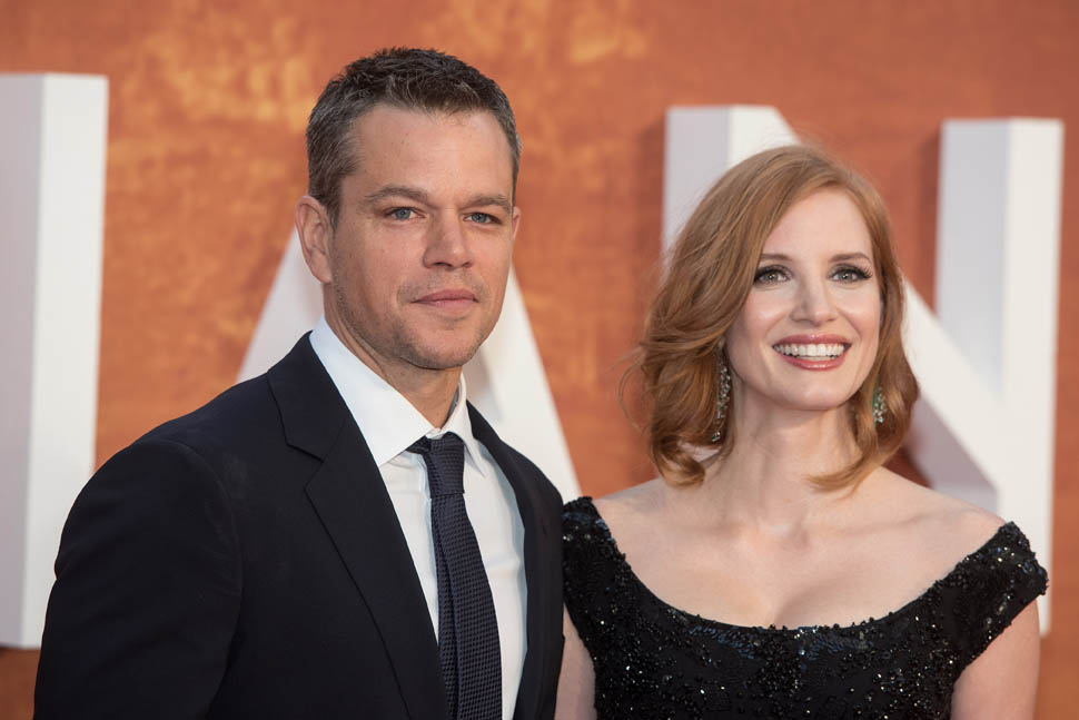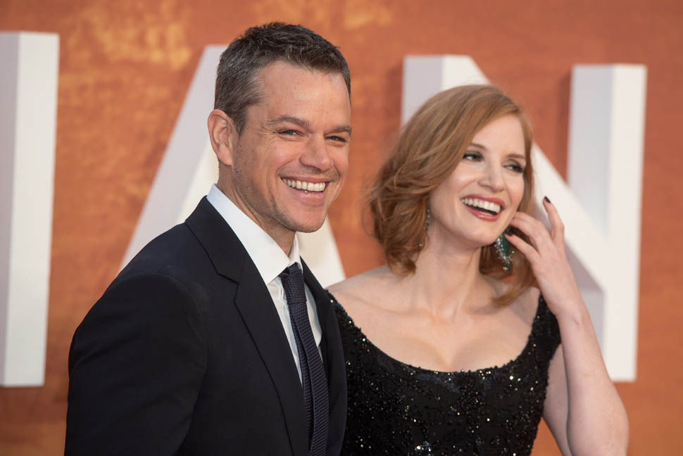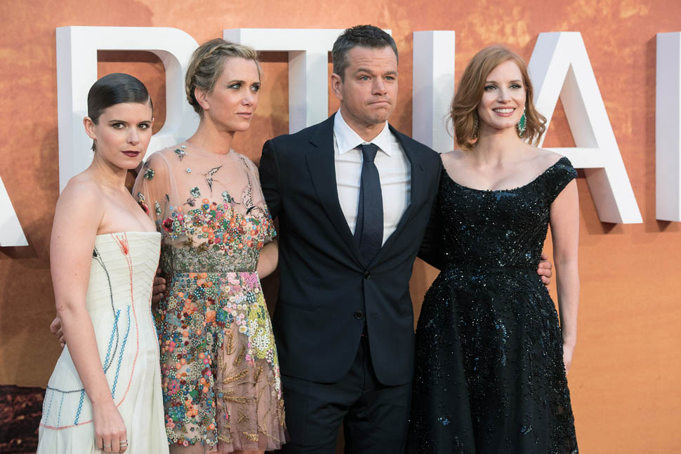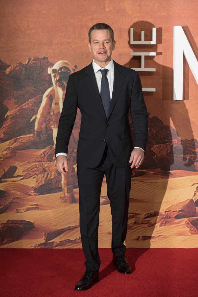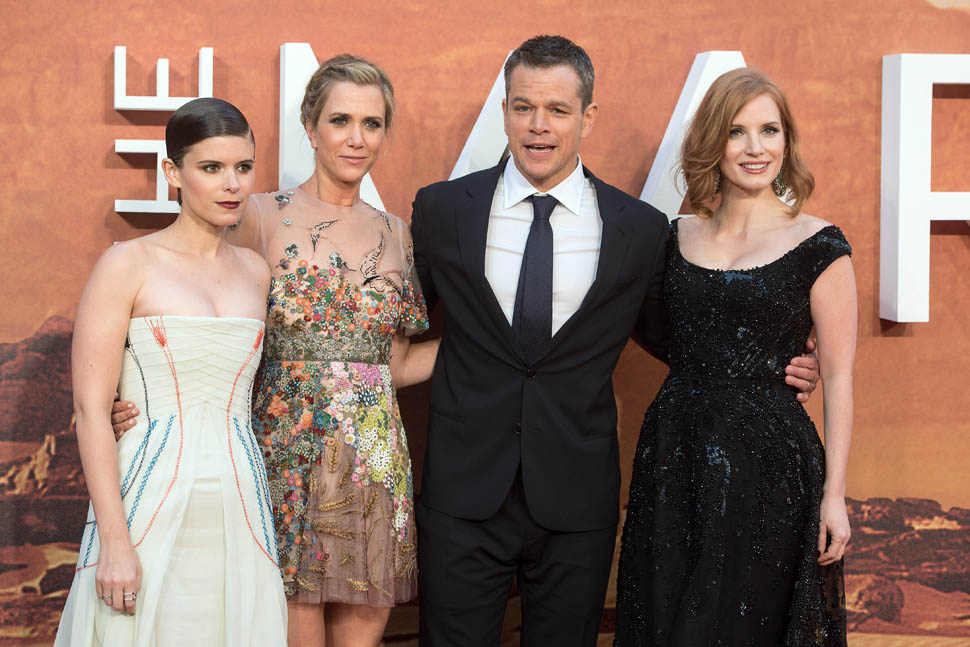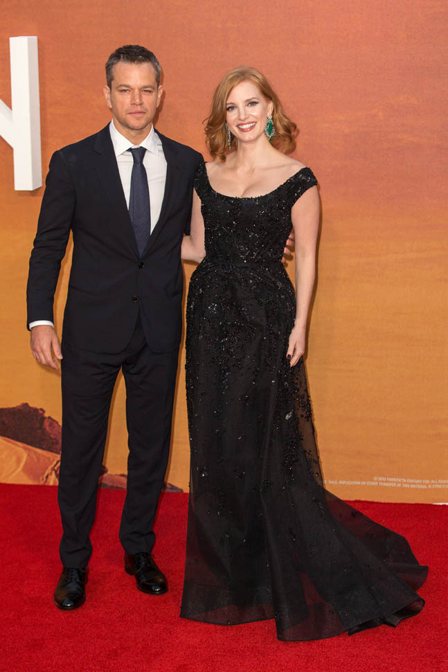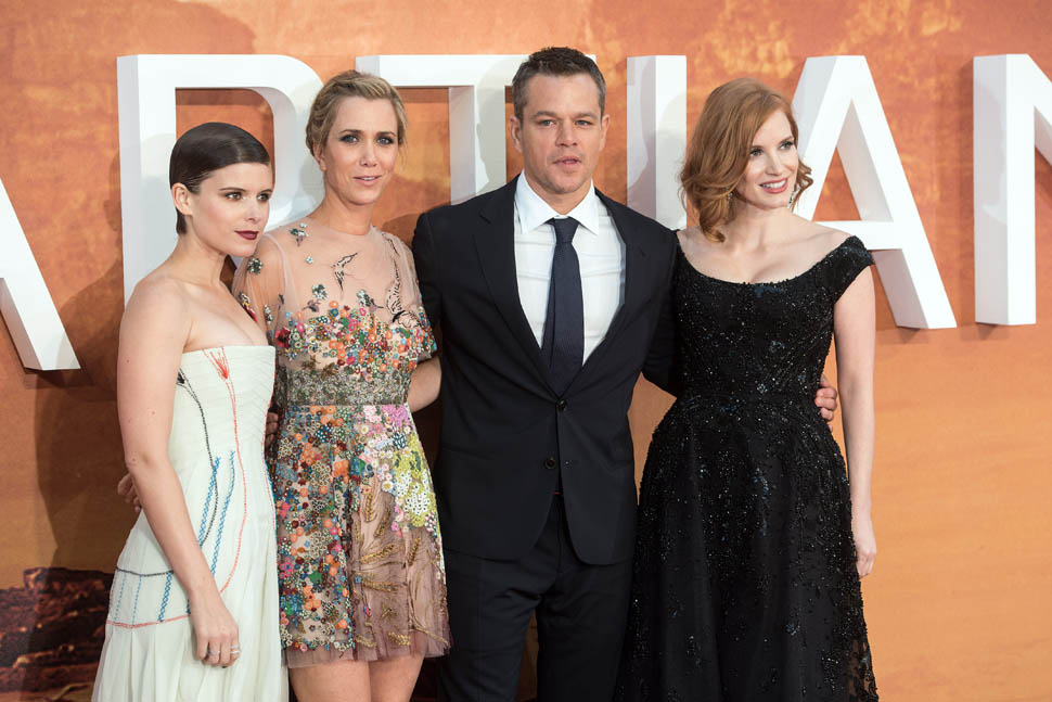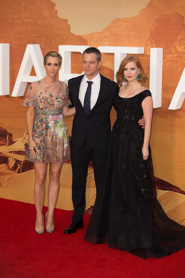 The cast of The Martian, led by Matt Damon, was in London tonight for the UK premiere. So far the reviews for The Martian have been quite strong. Sarah saw it at TIFF and liked it a lot and Sarah’s hard to please. But when I saw her after the screening, she wasn’t angry at all about spending two hours in the theatre watching it. This is a very strong endorsement. Click here to read her review.