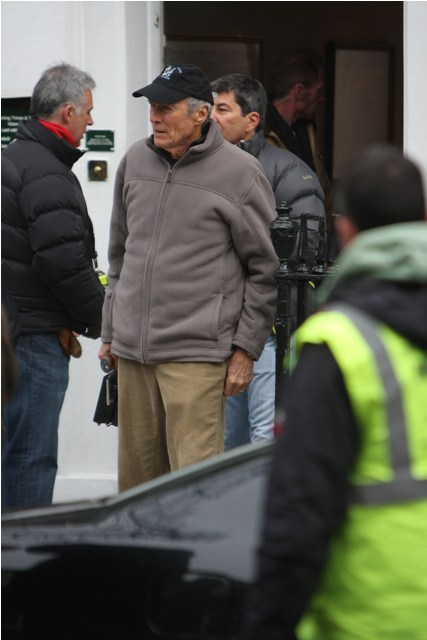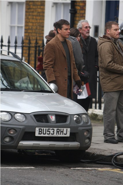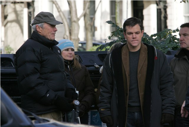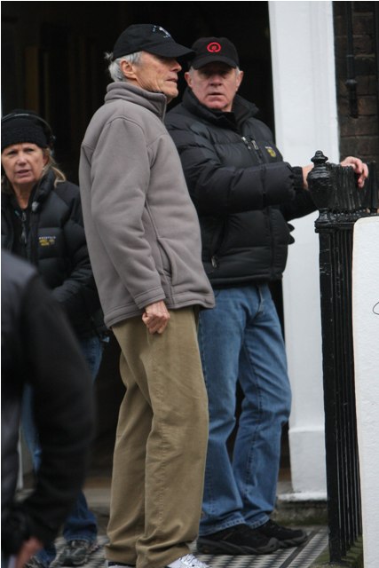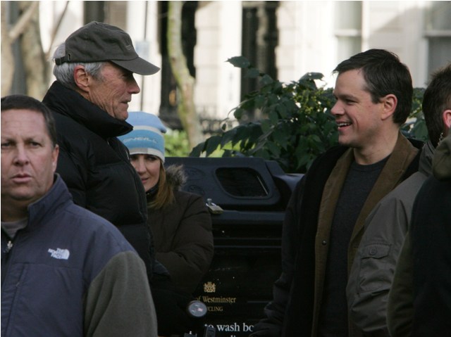 Matt Damon and Clint Eastwood were photographed today and yesterday in London shooting a new movie called Hereafter. Damon has just been nominated for a supporting actor Oscar for his role in Eastwood’s Invictus. And he also just came off filming The Adjustment Bureau in New York. He will be promoting another movie Green Zone later this month for a March release. And he has several projects in development. Damon projects don’t usually languish in development hell forever either.