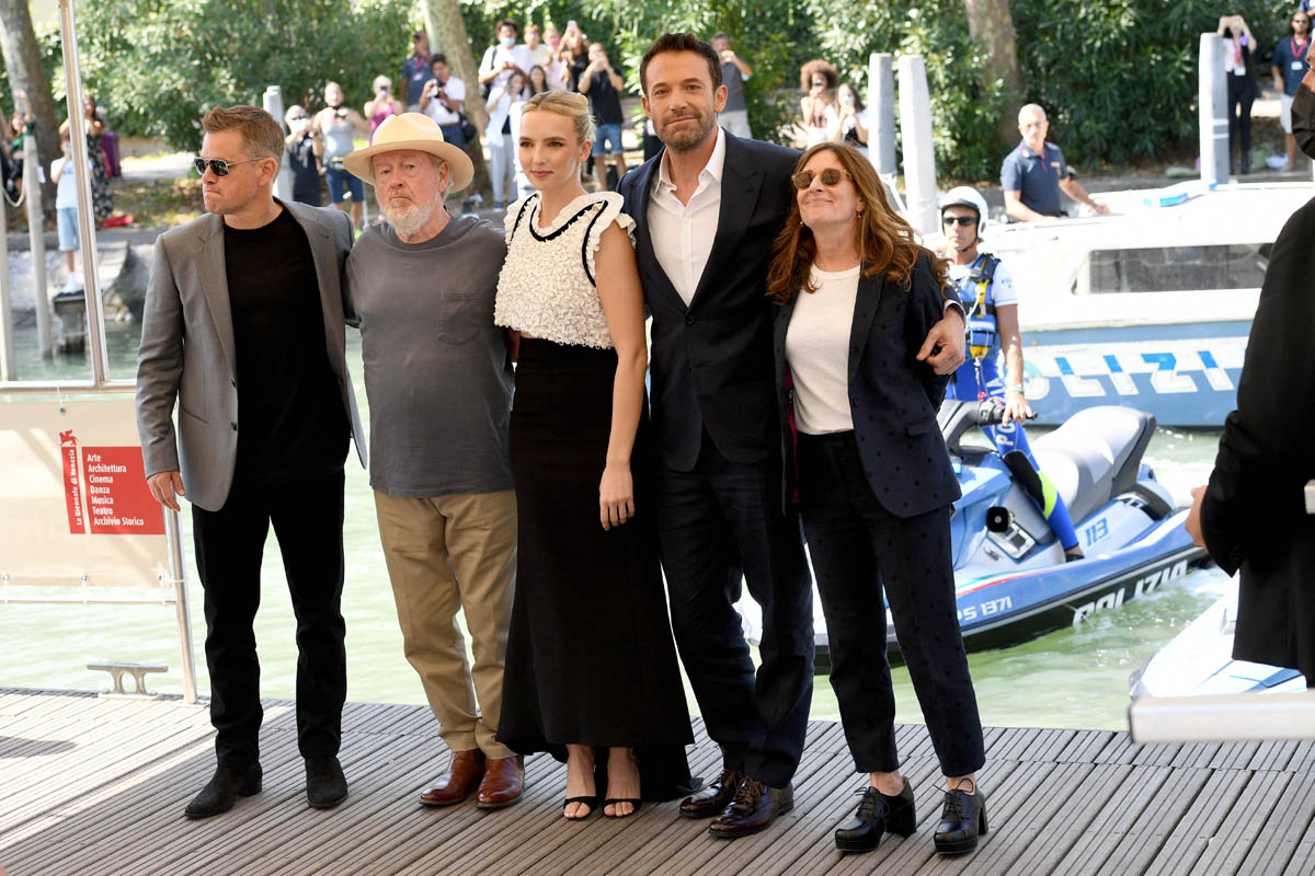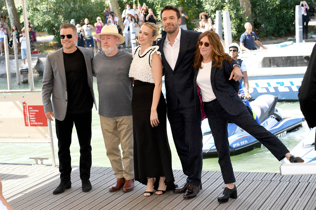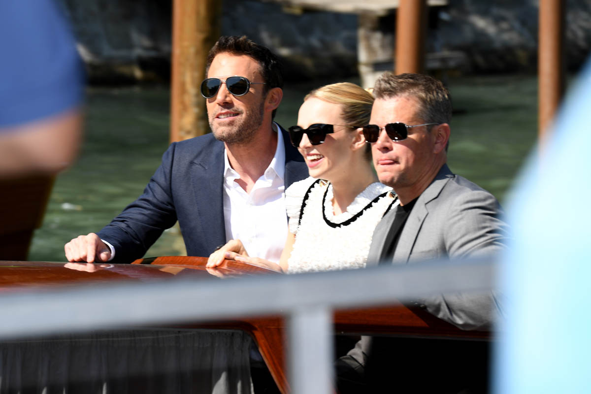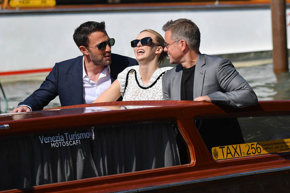 But first, Matt Damon, Ben Affleck, and Jodie Comer stepped out together for the photo call today along with director Ridley Scott. They look like they’re having a great time, especially on the water taxi, one of the festival’s most glamourous signature scenes. Ben, in particular, looks pretty pleased with himself? It’s totally Photo Assumption, our favourite game of baseless conclusions going by pictures only, but he’s had a smirk on his face since yesterday and…same, I would be the same. No further explanation needed.